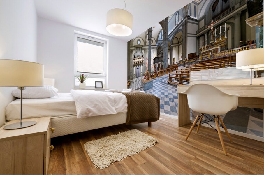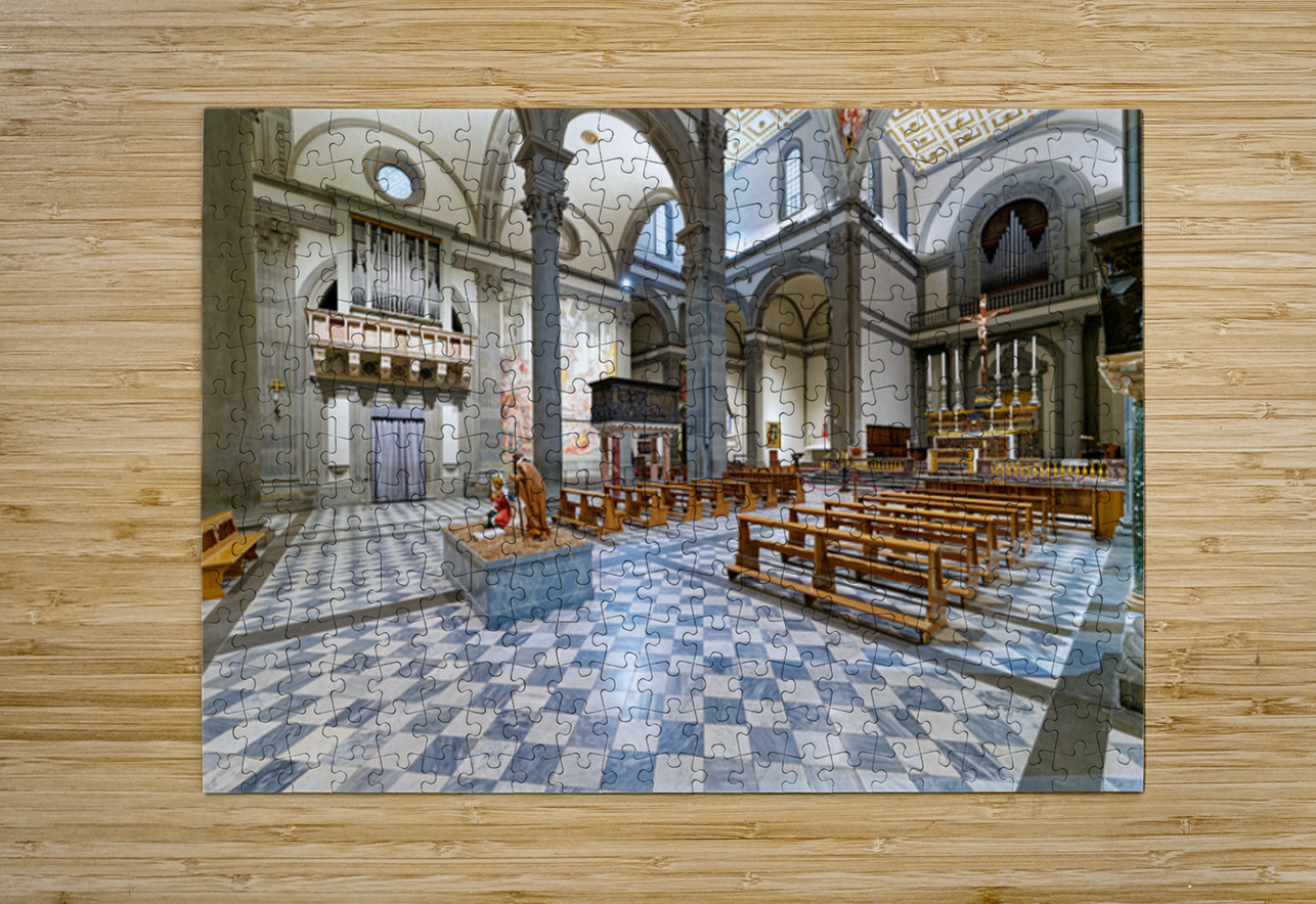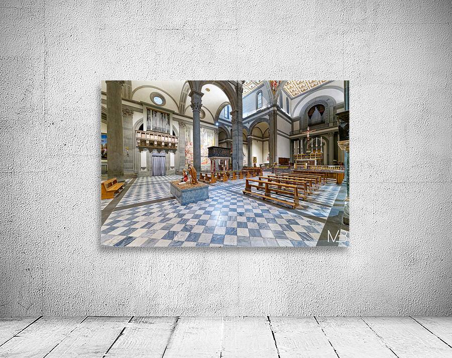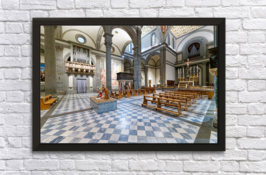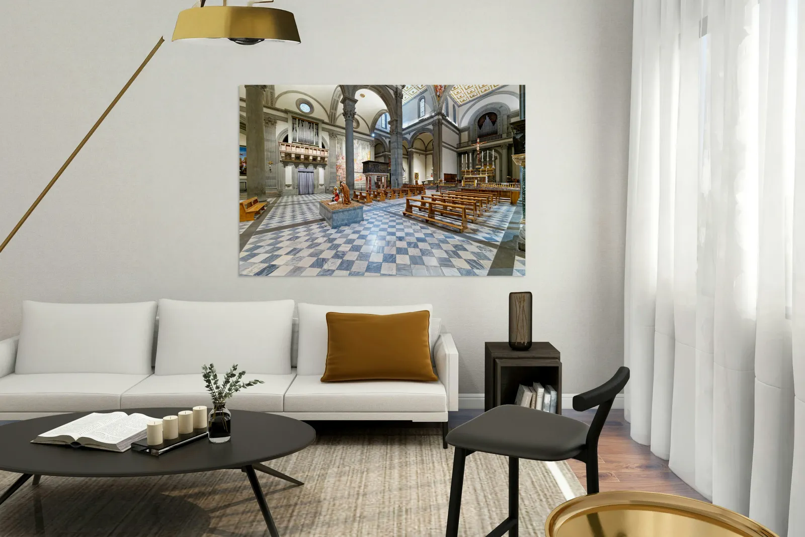 People explore the Basilica of San Lorenzo in Florence Tuscany. They admire the architecture and the art inside the church.