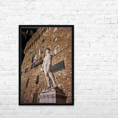 David statue by Michelangelo in Florence Tuscany at night Picture Frame Printing