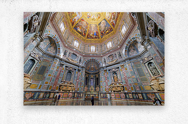 Visitors explore the Cappella dei Principi of the Medici Chapels in Florence. The ornate details and artwork attract many tourists daily.