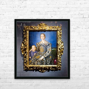 "Bronzinos portrait of Eleonora of Toledo and Giovanni in Floren" in a framed print.