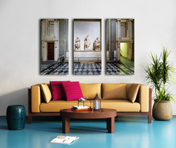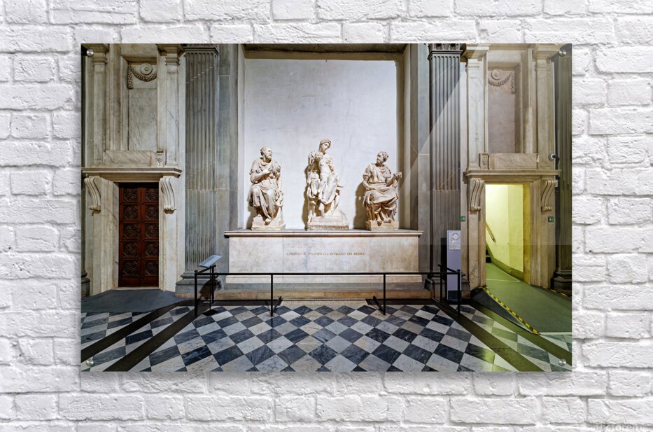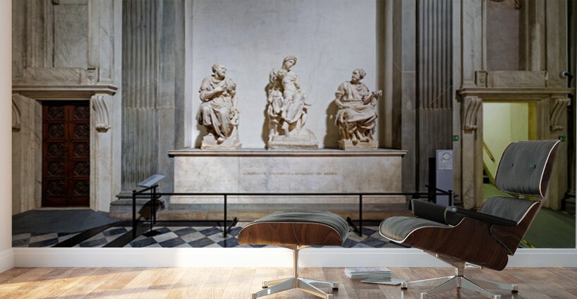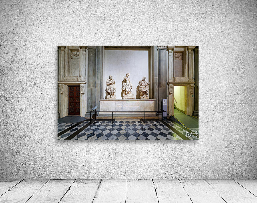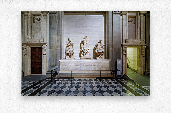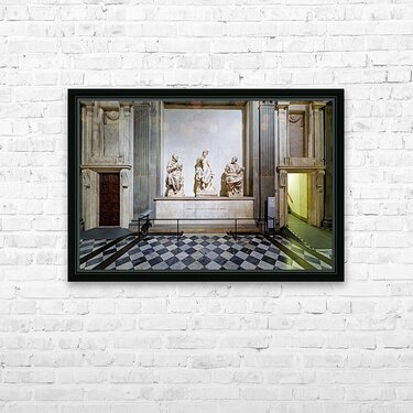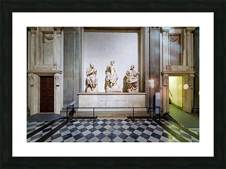 "Michelangelos madonna and child in medici chapels florence" in a framed print.