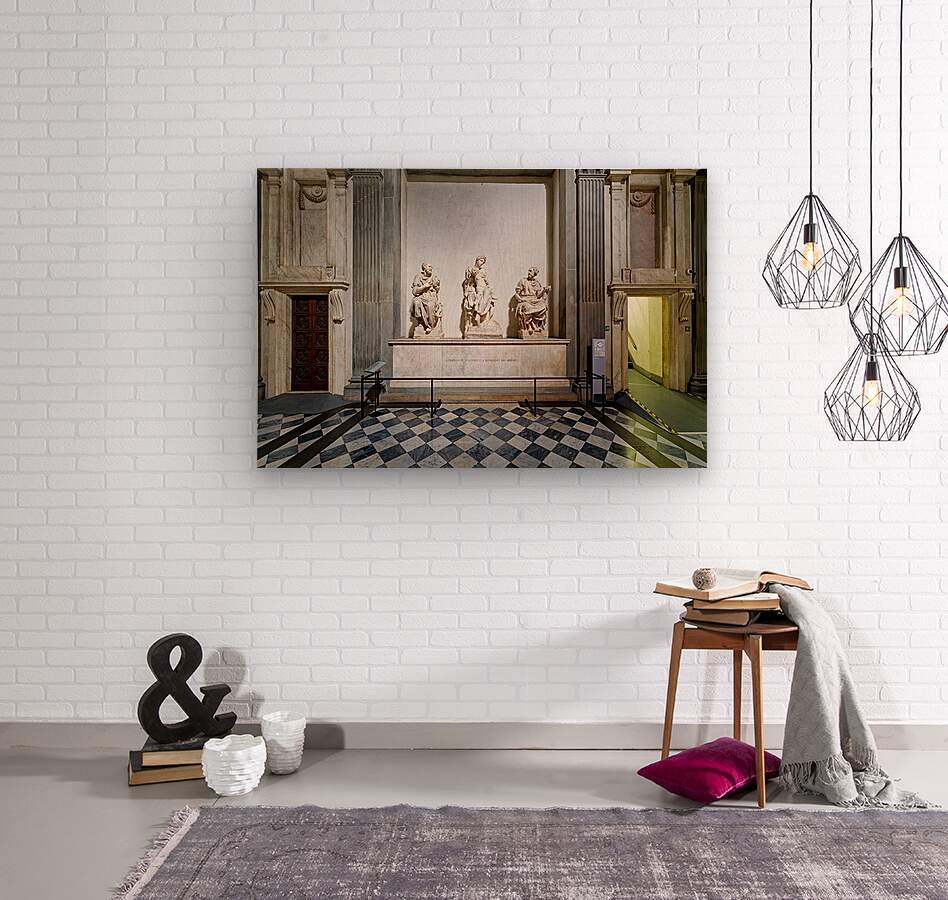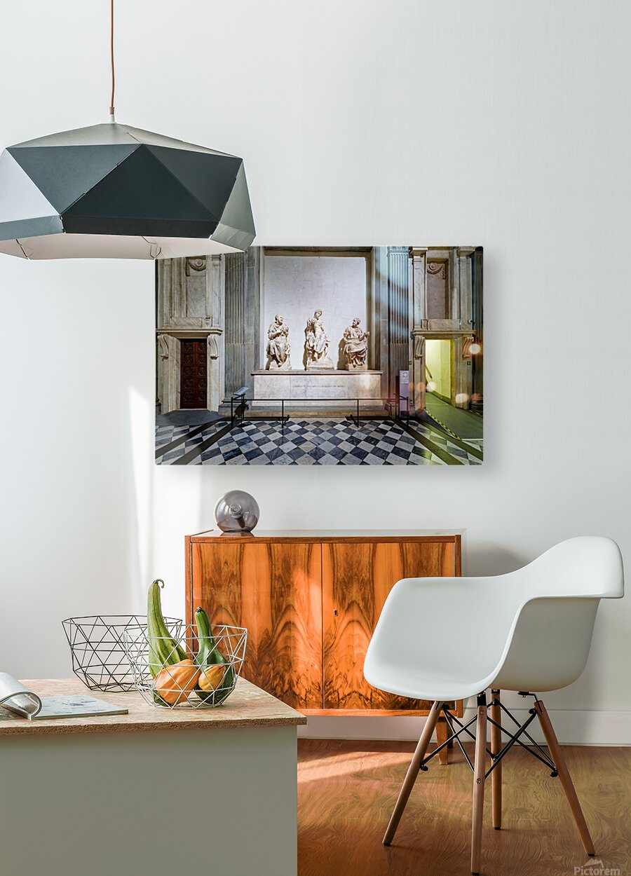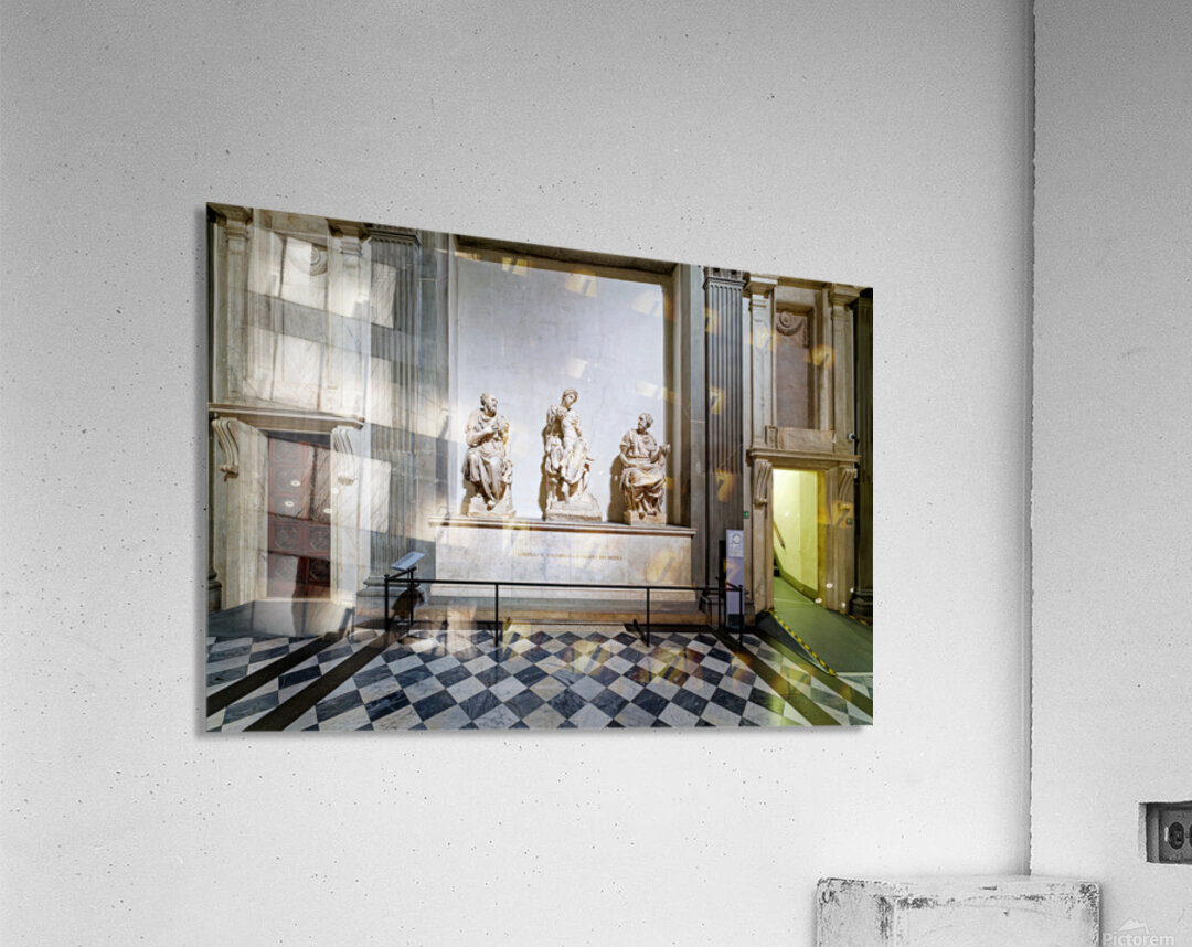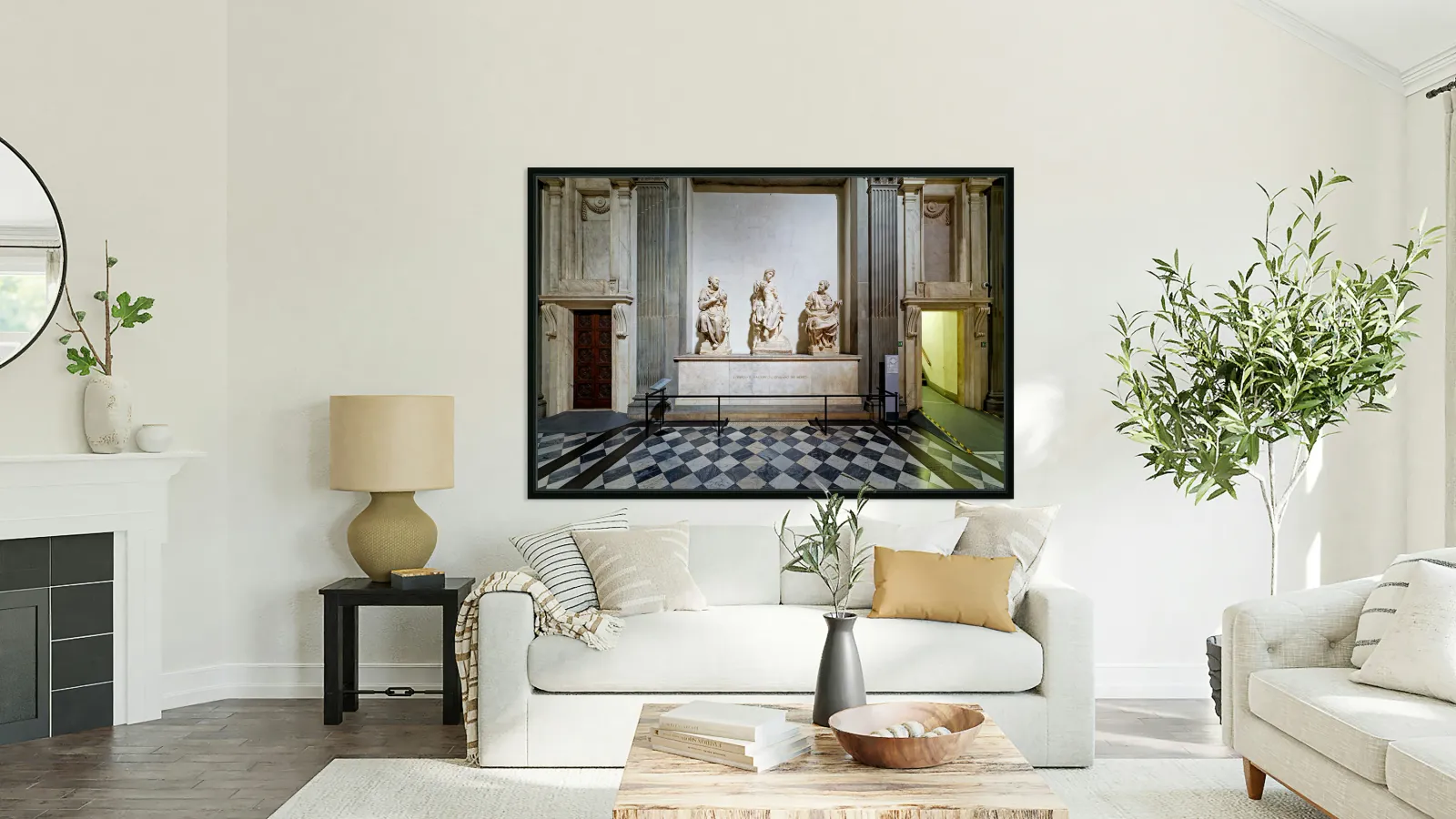 "Michelangelos madonna and child in medici chapels florence" in a framed print.