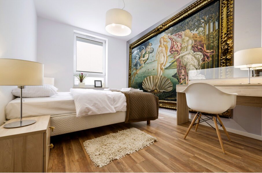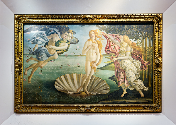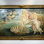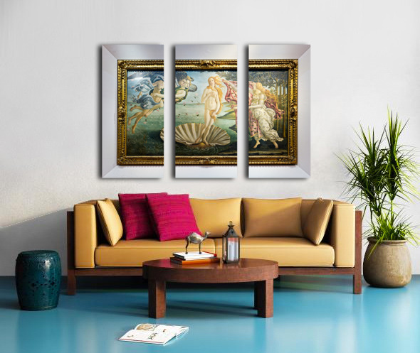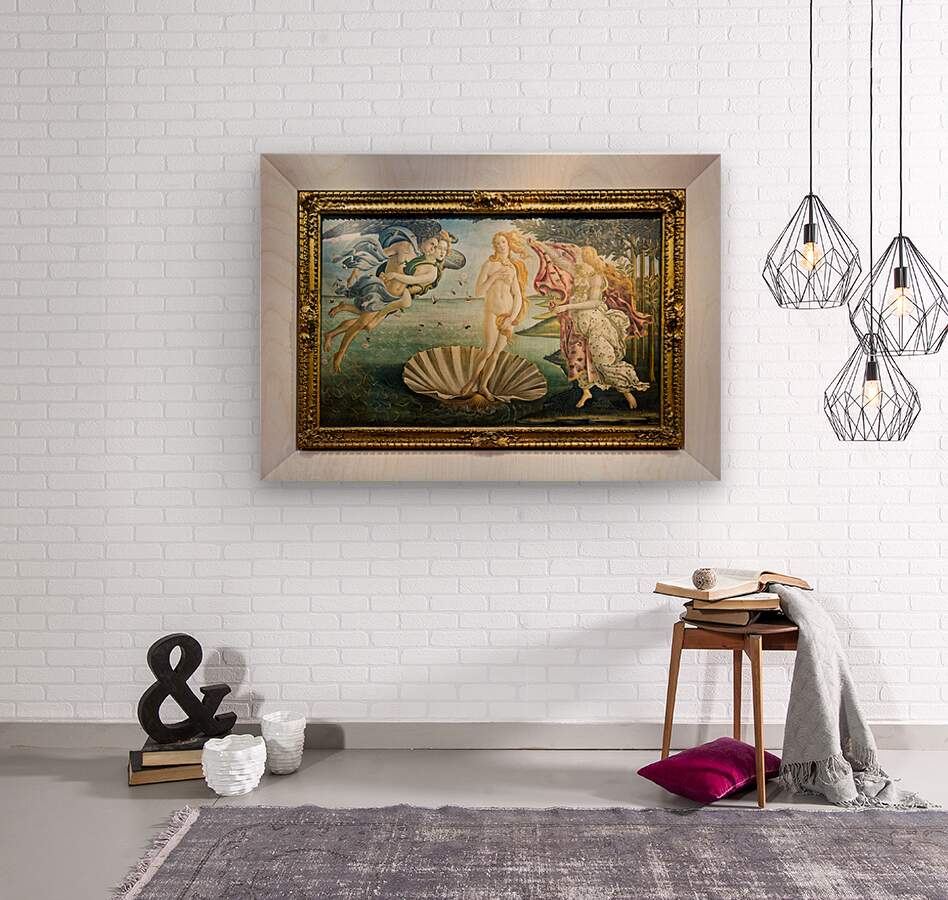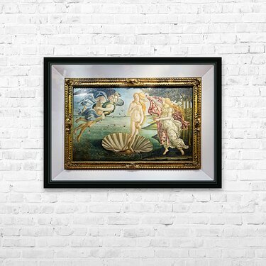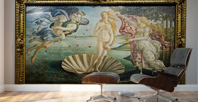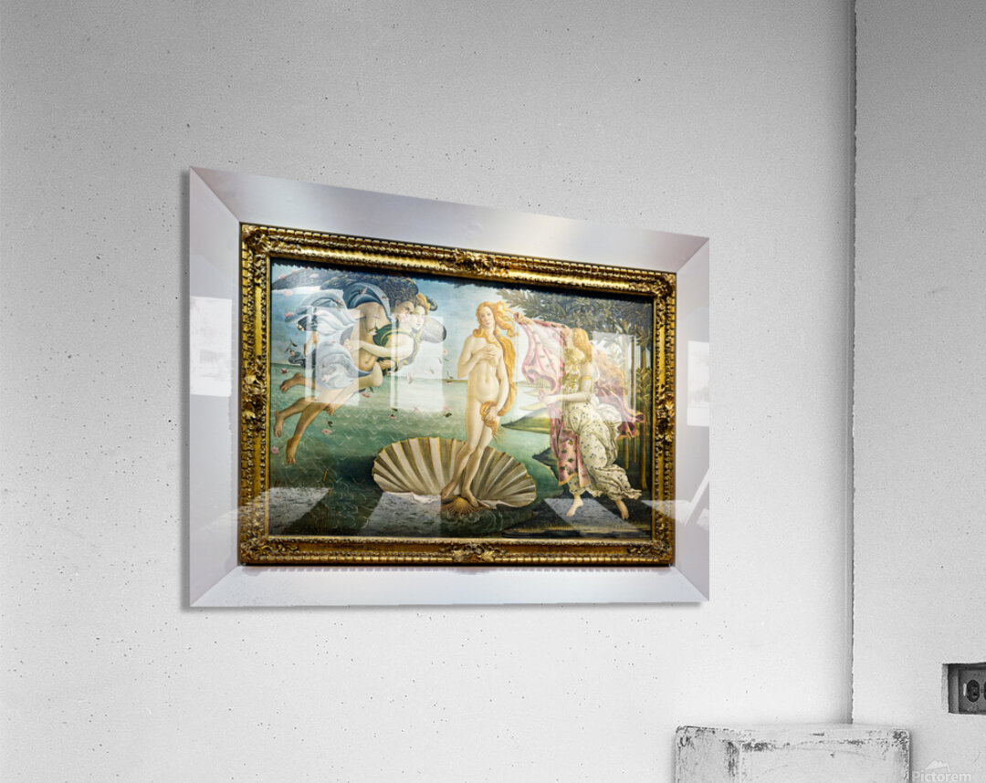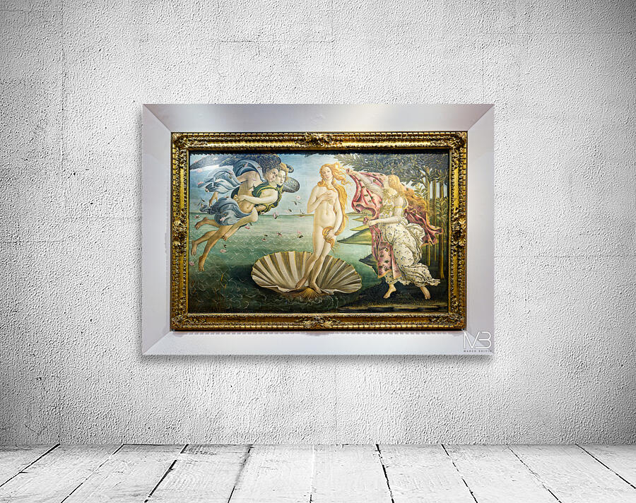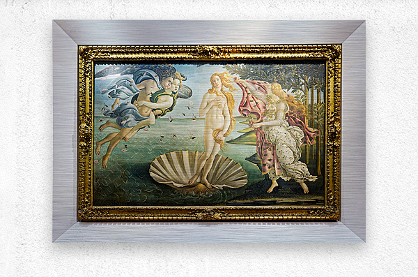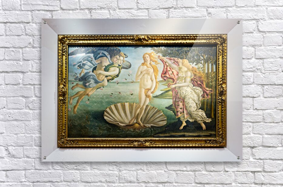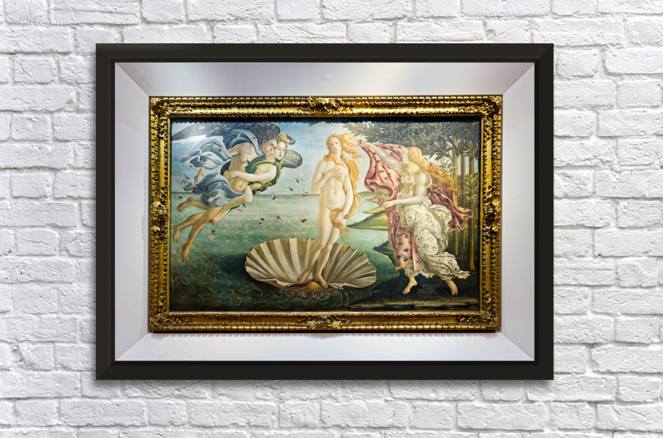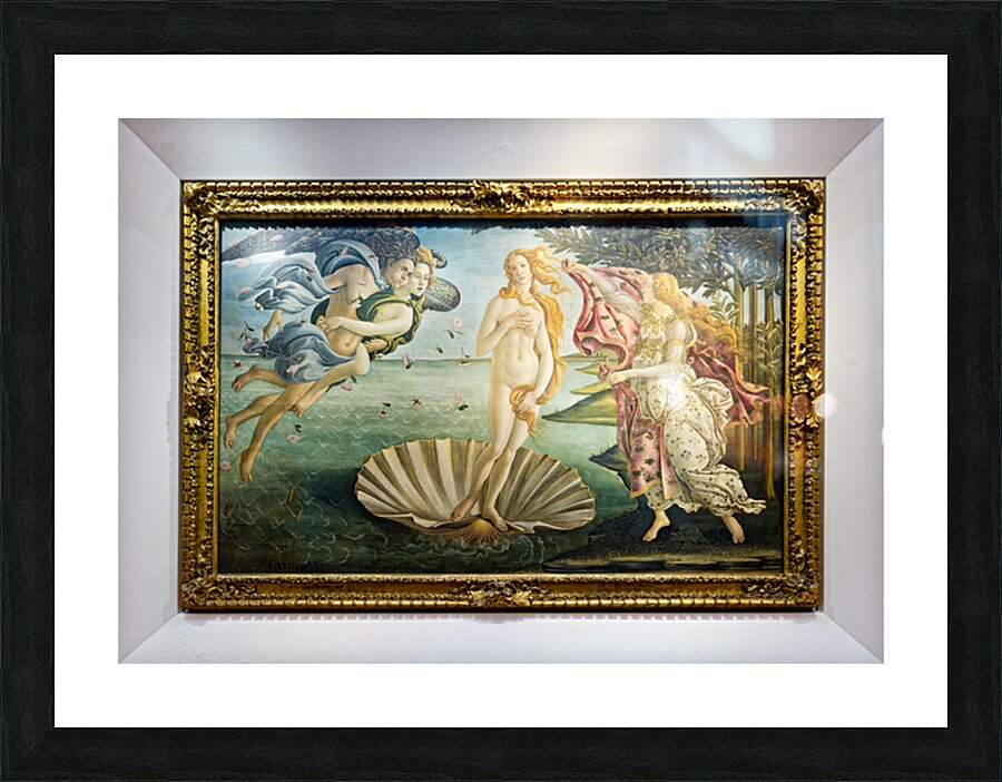"Botticellis birth of venus in uffizi gallery florence italy" in a framed print.
