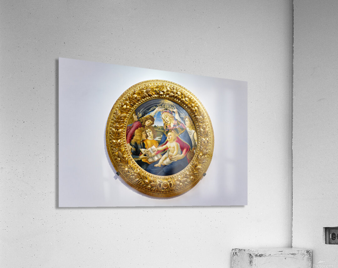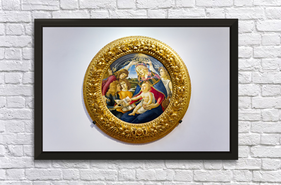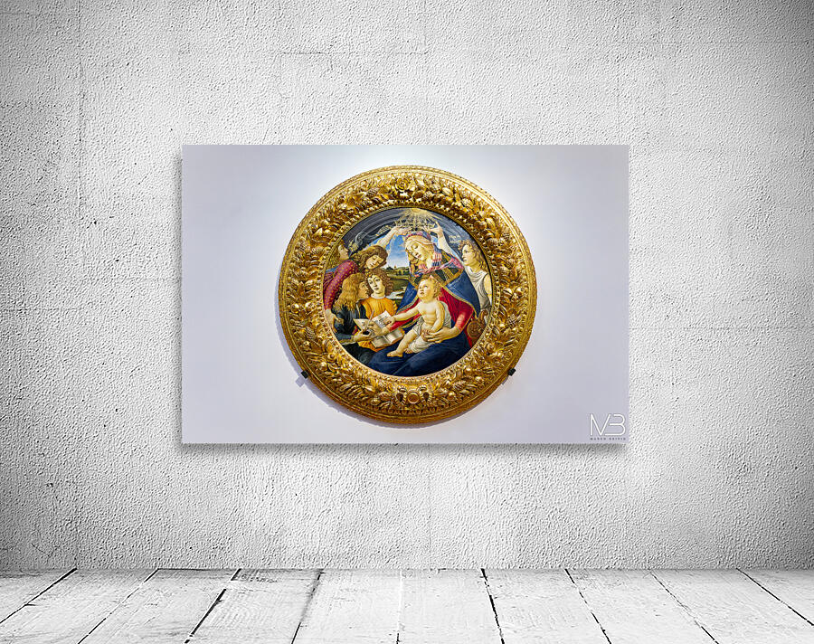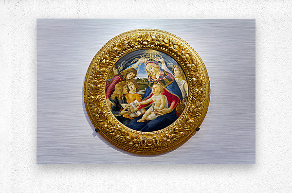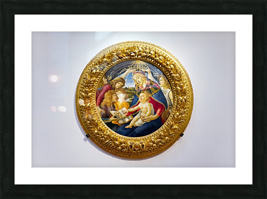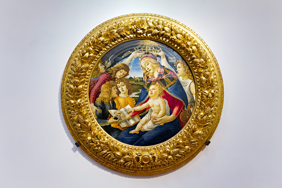 Botticellis Madonna of the Magnificat is shown in the Uffizi Gallery in Florence. The painting features Madonna with child and angel figures.