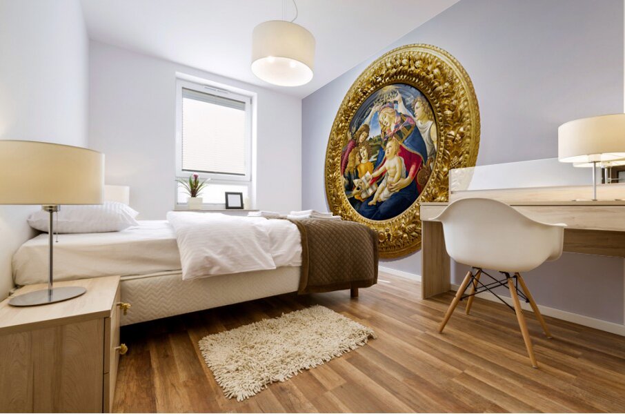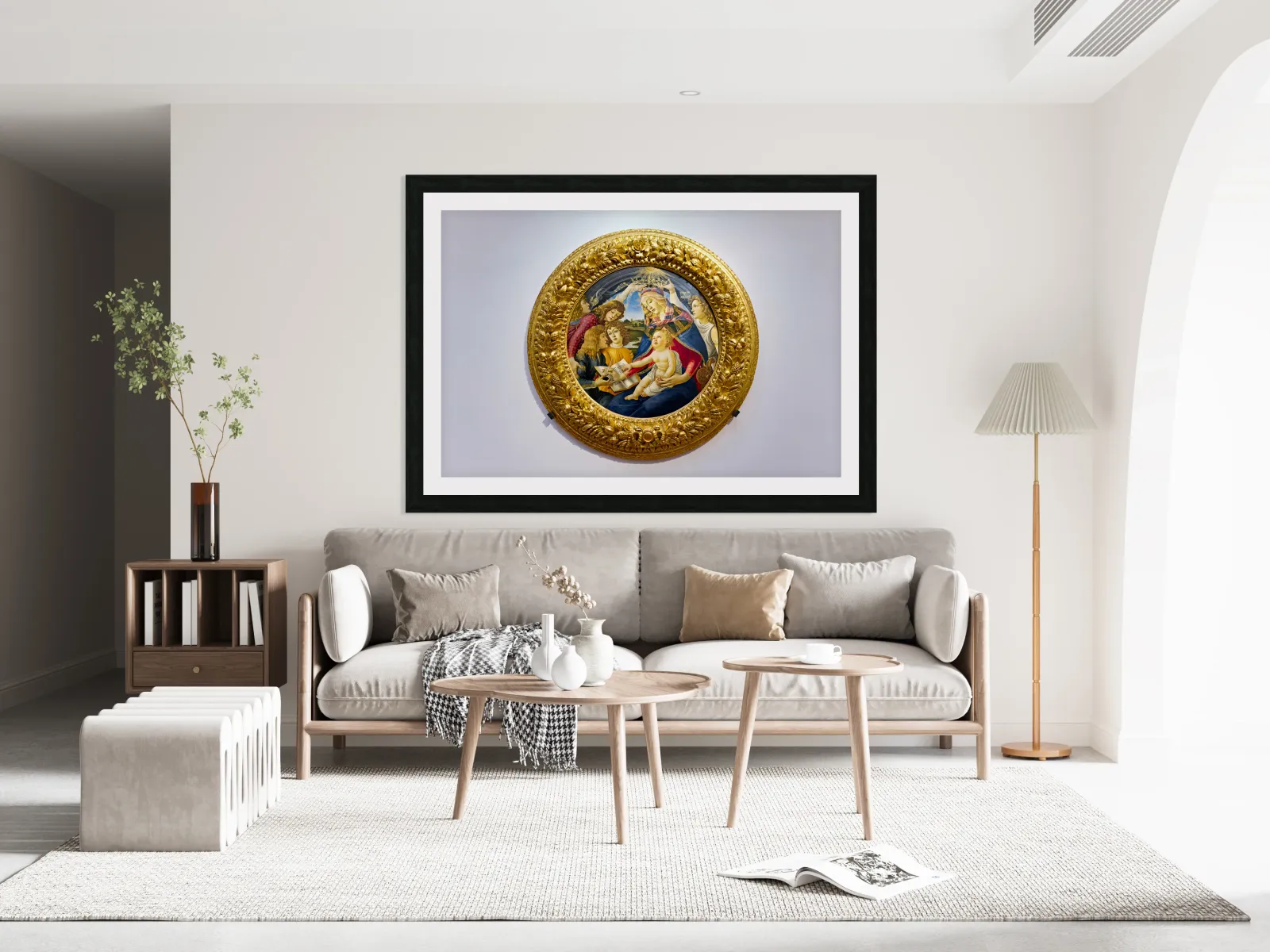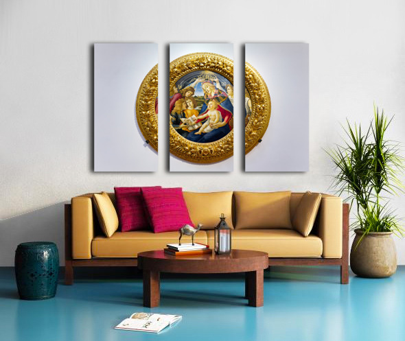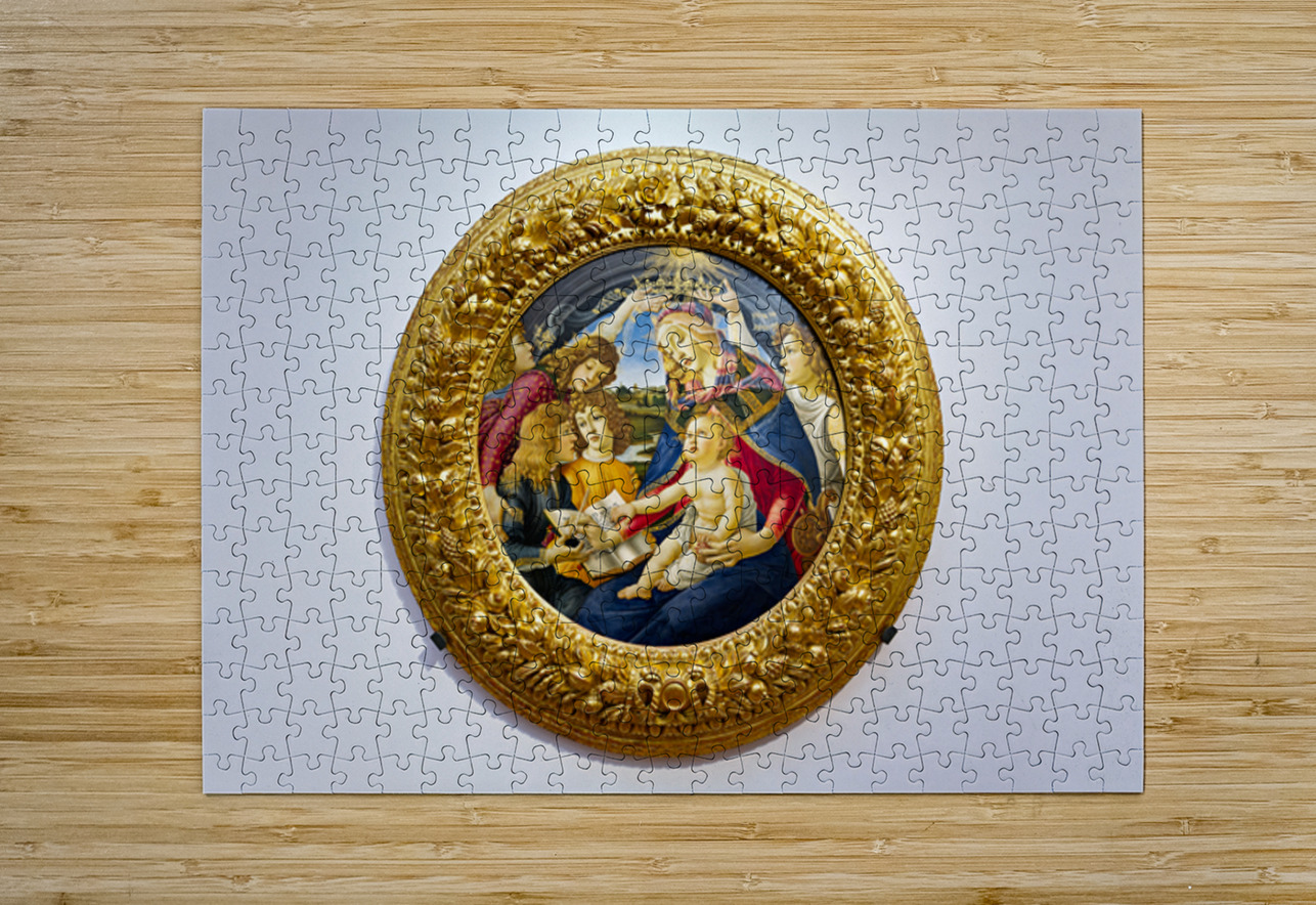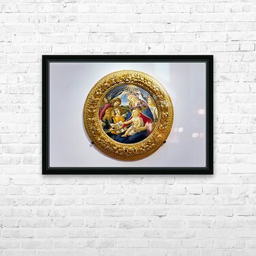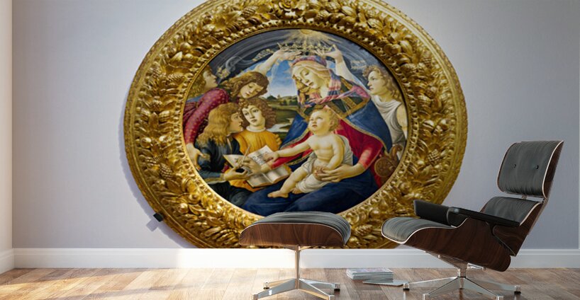Botticellis Madonna of the Magnificat is shown in the Uffizi Gallery in Florence. The painting features Madonna with child and angel figures.