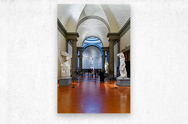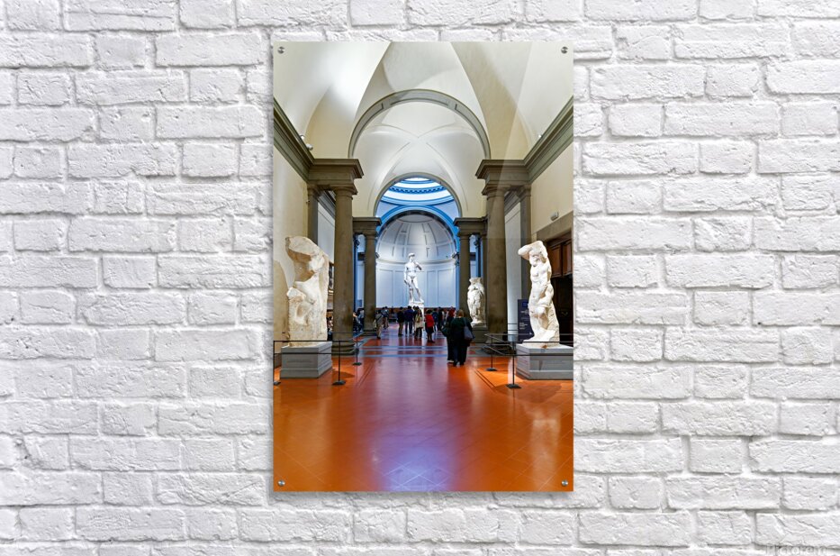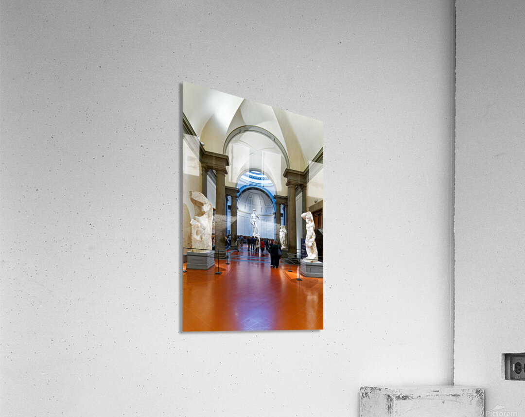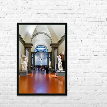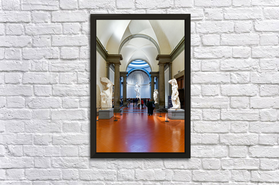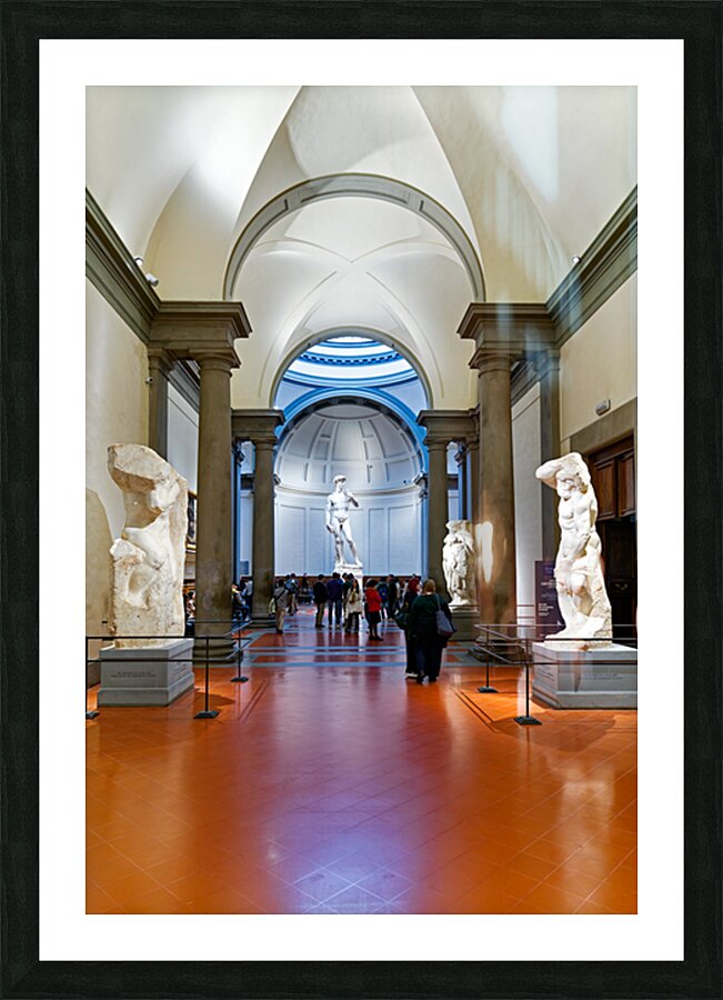 "Michelangelos David stands in the Gallery of the Academy of Flo" in a framed print.