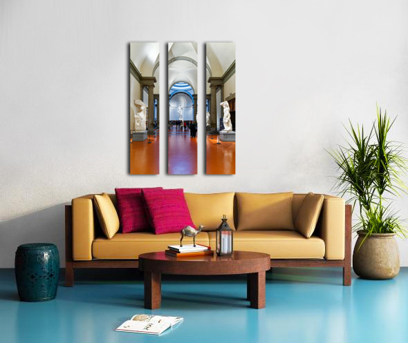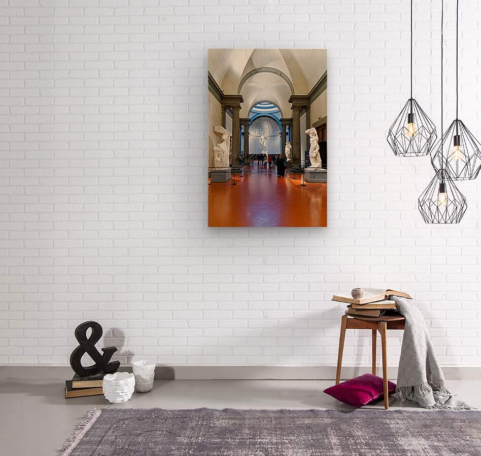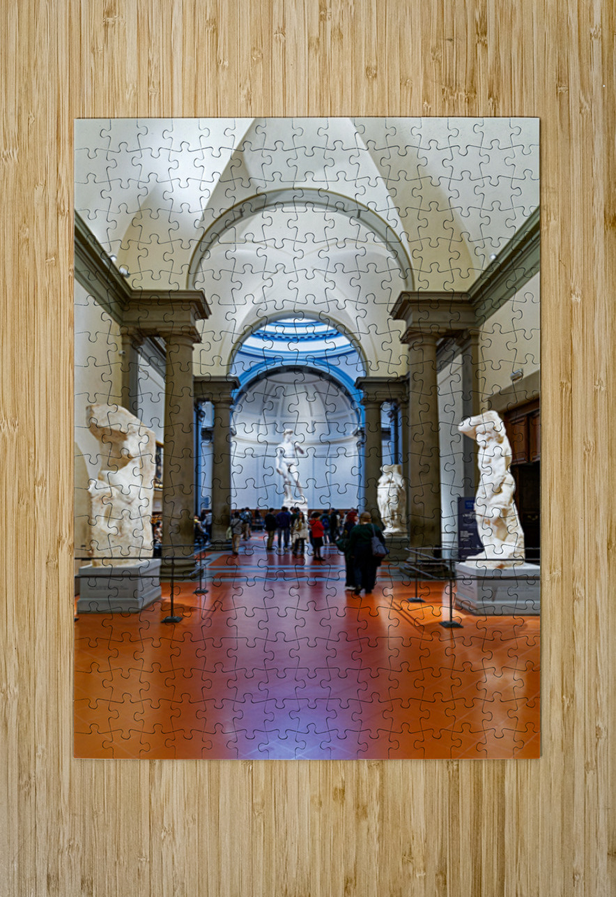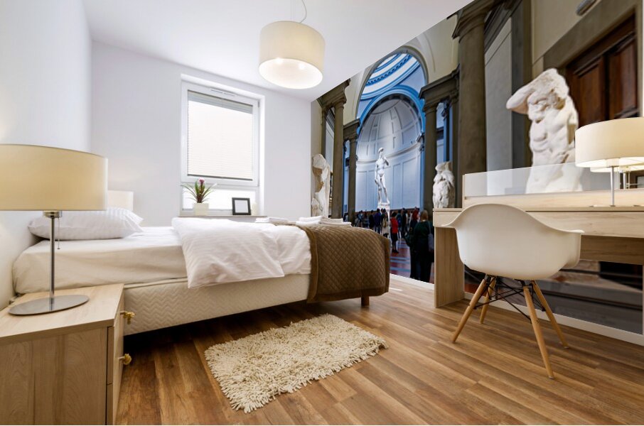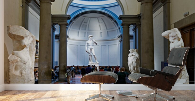 "Michelangelos David stands in the Gallery of the Academy of Flo" in a framed print.