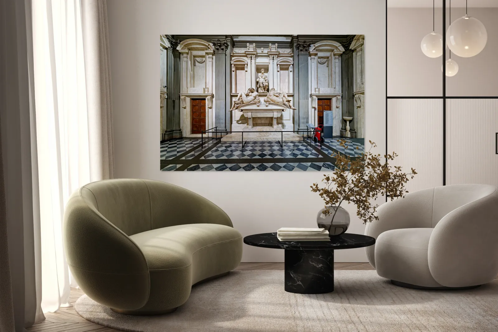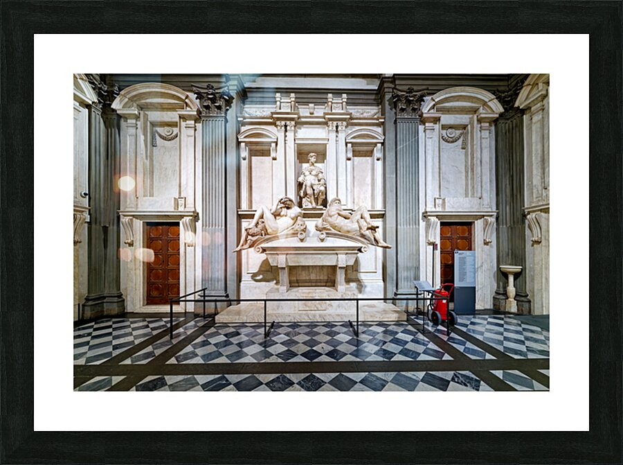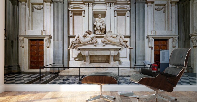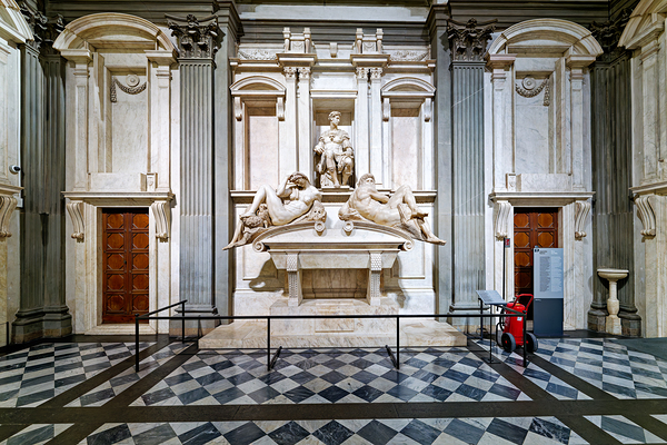 The tomb of Giuliano di Lorenzo by Michelangelo is located in the Medici Chapels. Marble sculptures are displayed in the New Sacristy area.