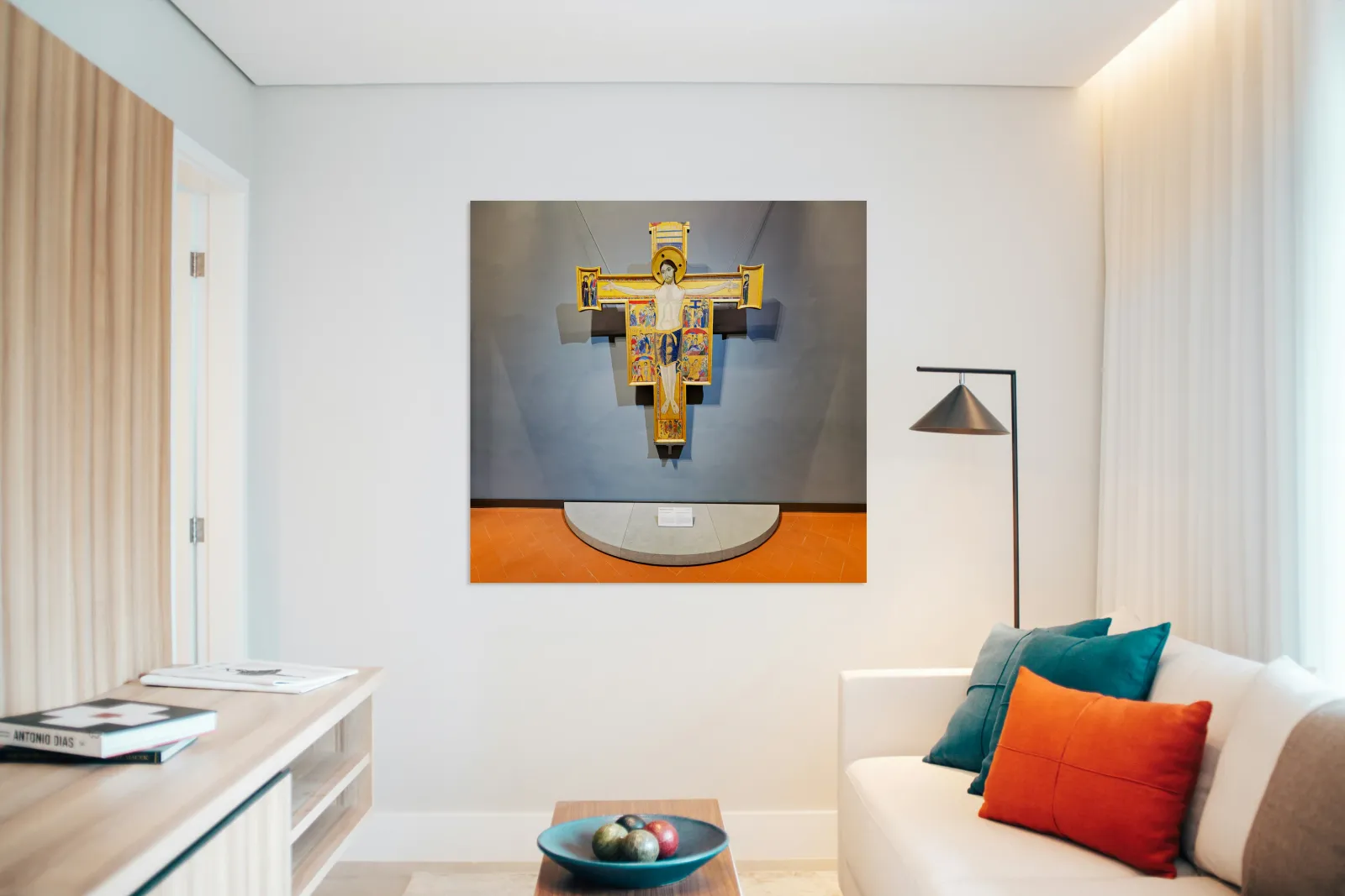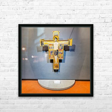 "Crucifix with scenes from the life of Christ in Uffizi Gallery" in a framed print.