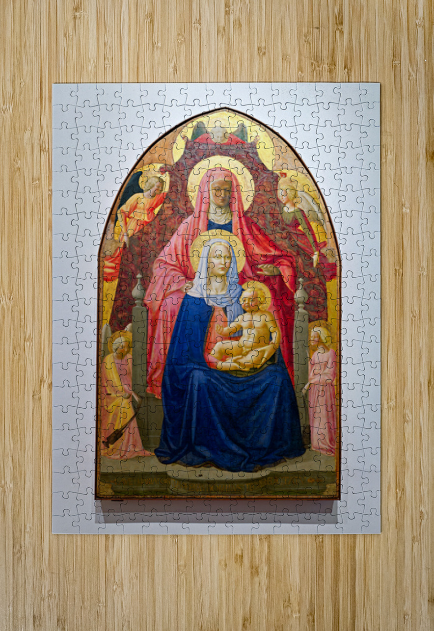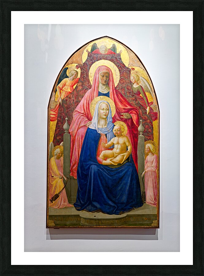 Masaccios artwork shows Madonna with St. Anne and five angels in Uffizi Gallery Florence. This piece reveals important religious themes.