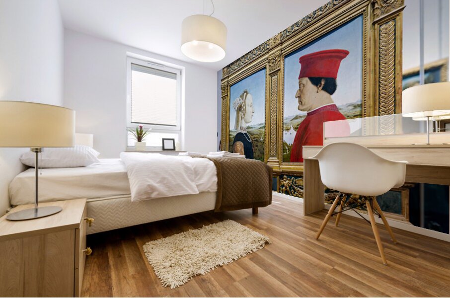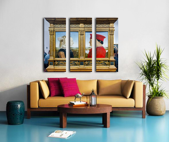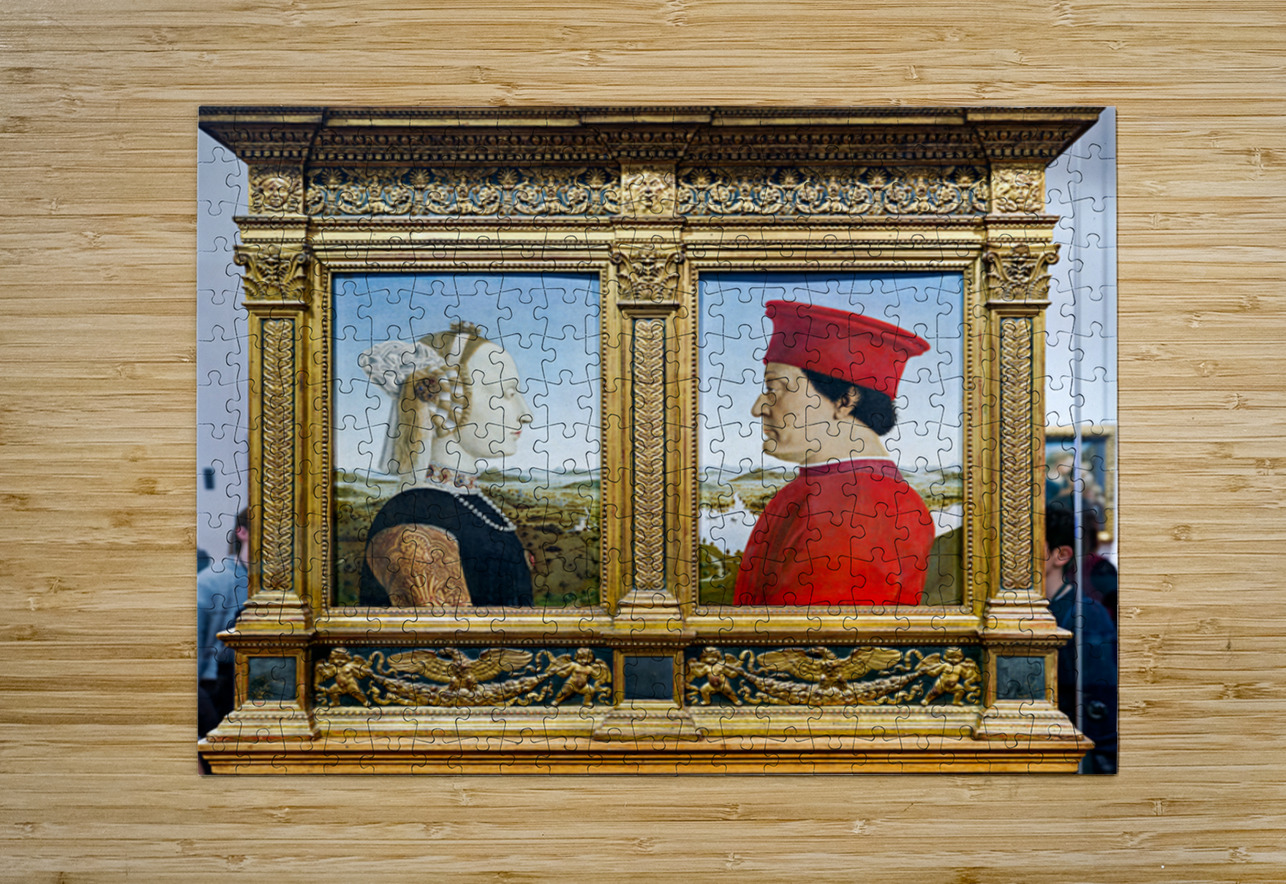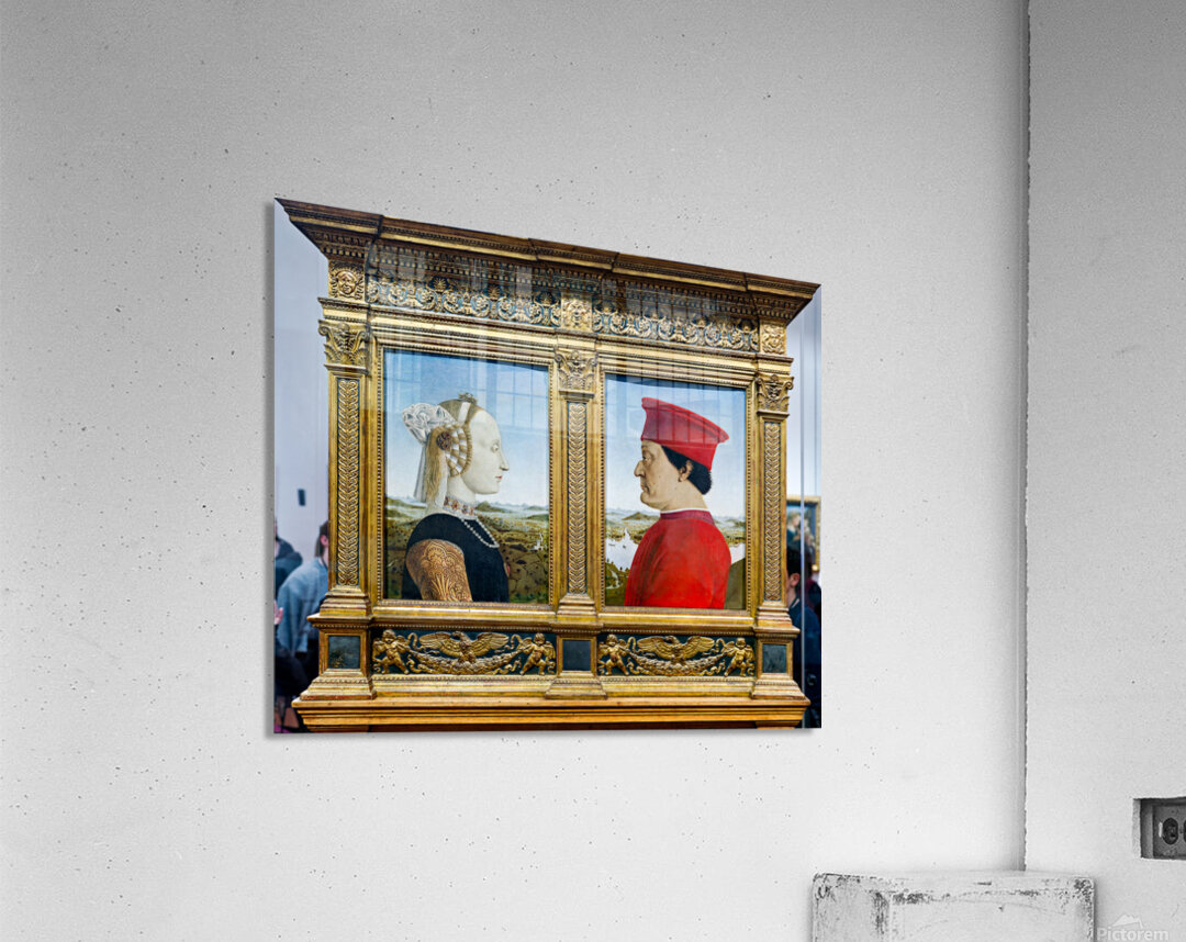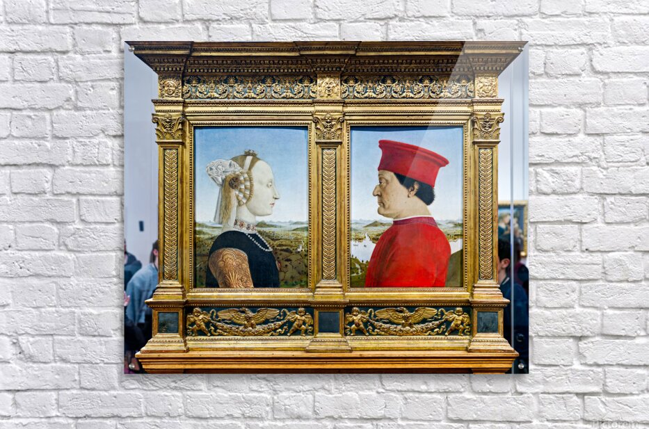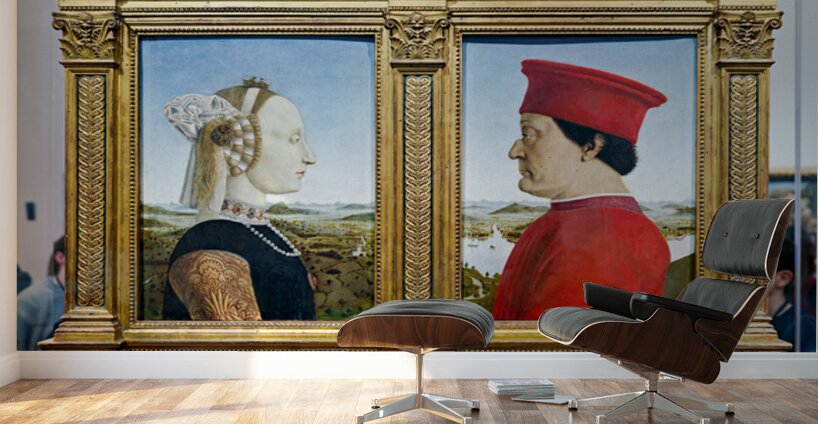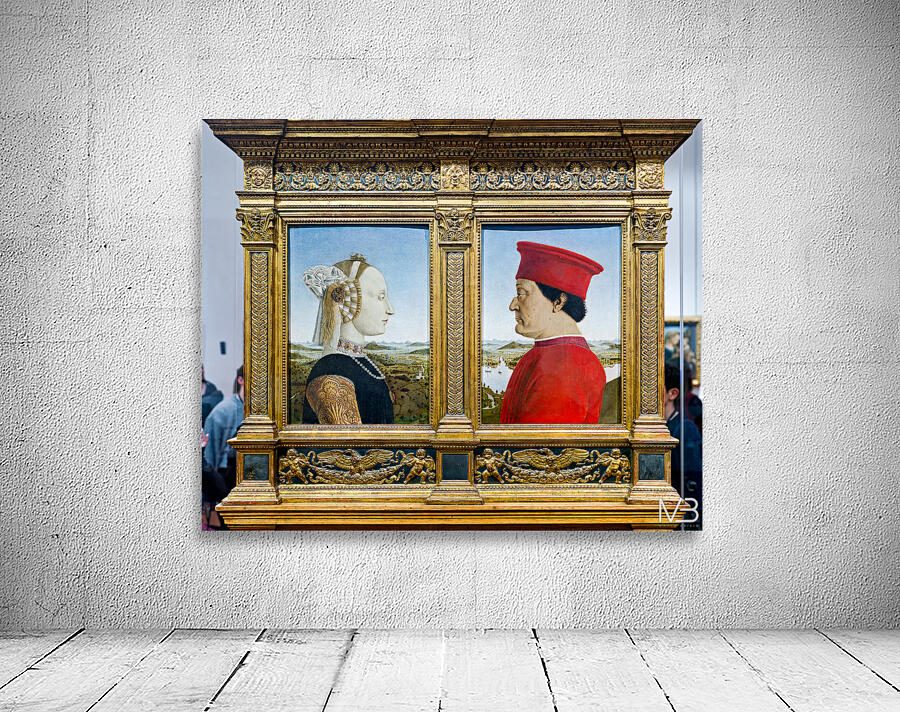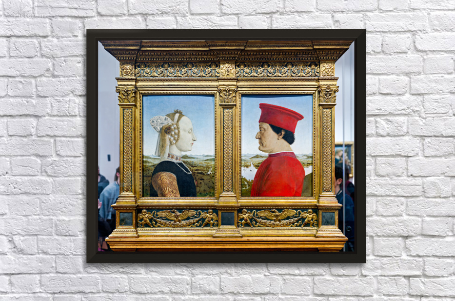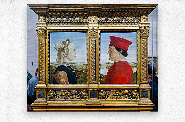 Federico da Montefeltro and Battista Sforza facing each other. It is displayed in the Uffizi Gallery in Florence Italy.