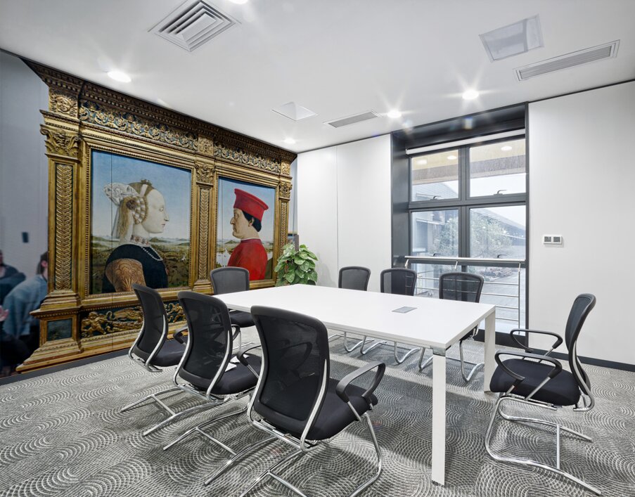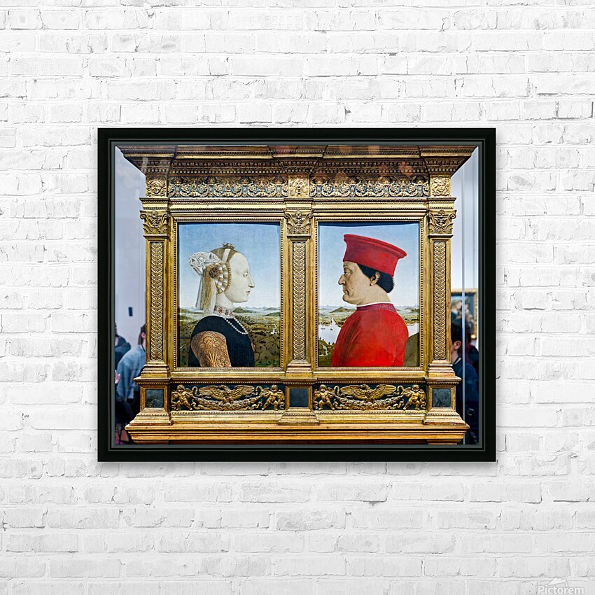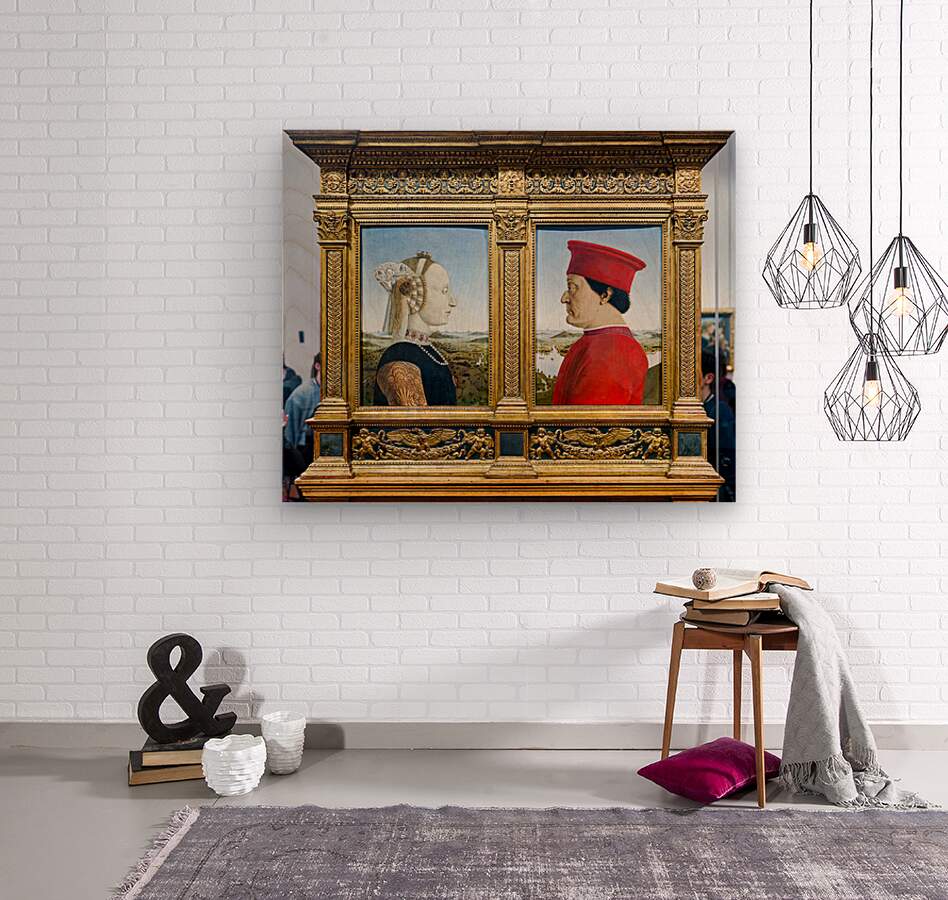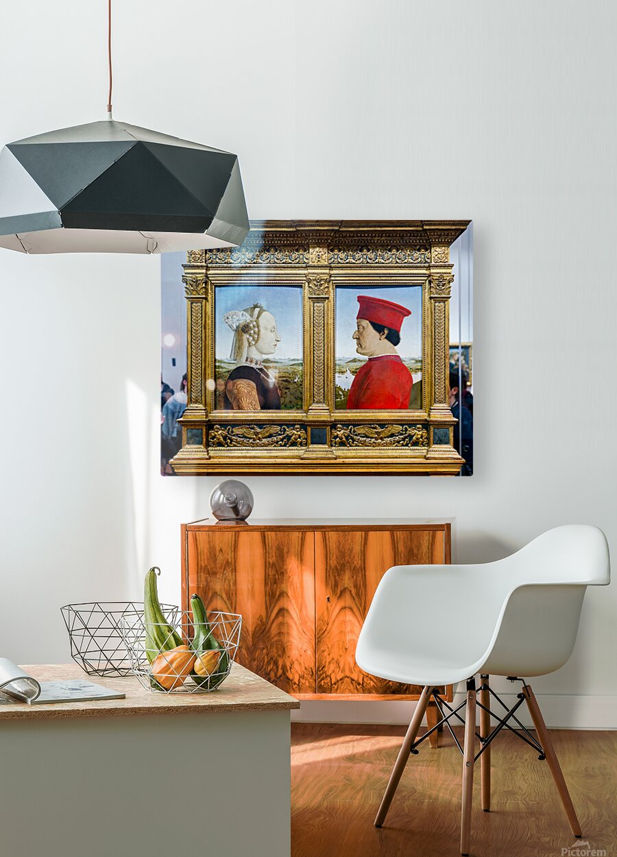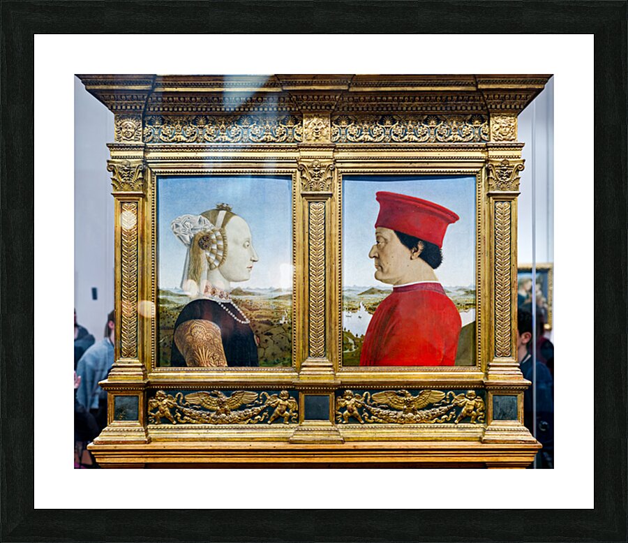 "Federico da Montefeltro and Battista Sforza facing each other" in a framed print.