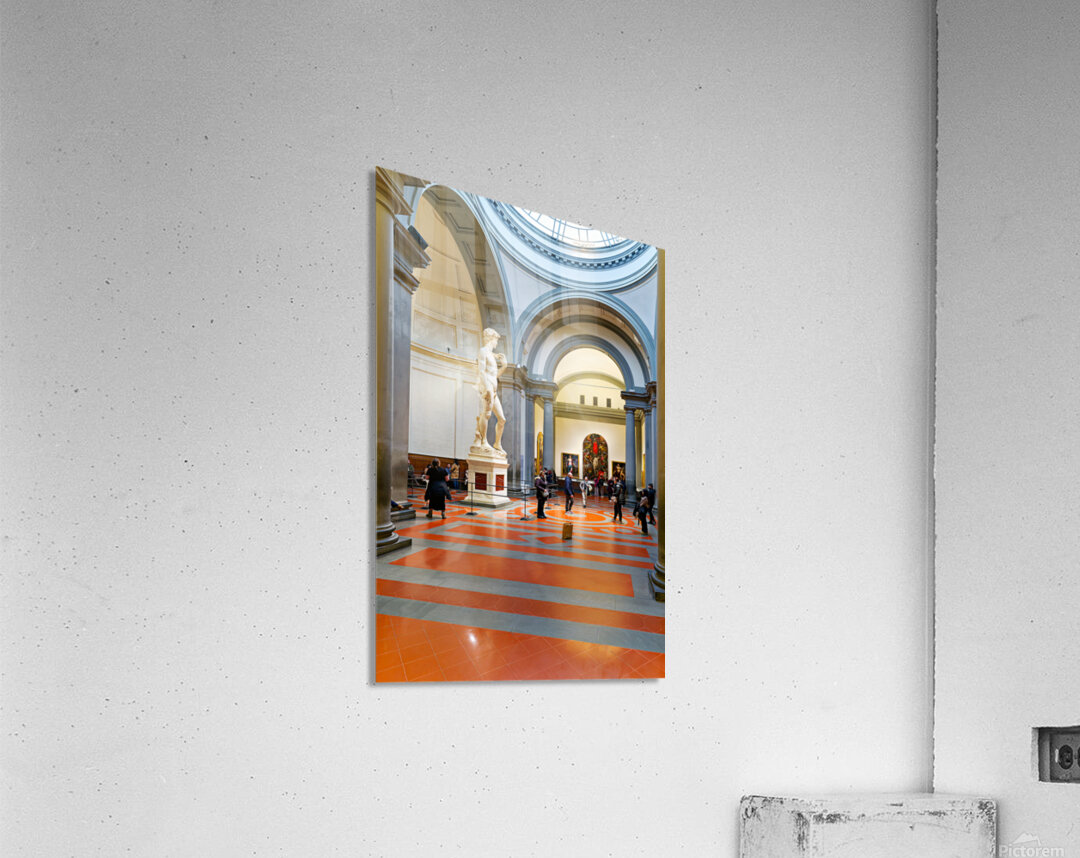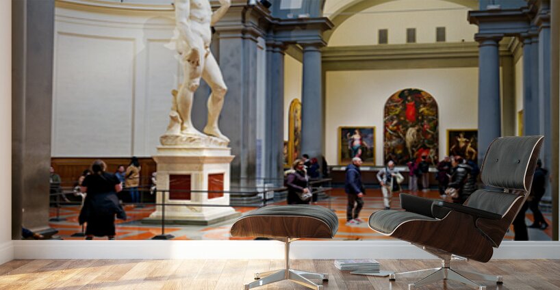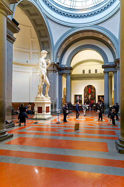 Visitors explore the Gallery of the Academy in Florence viewing Michelangelos David and other artworks in the historic setting.