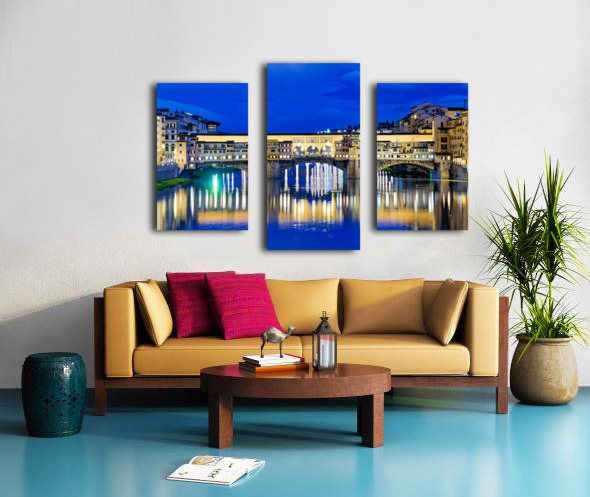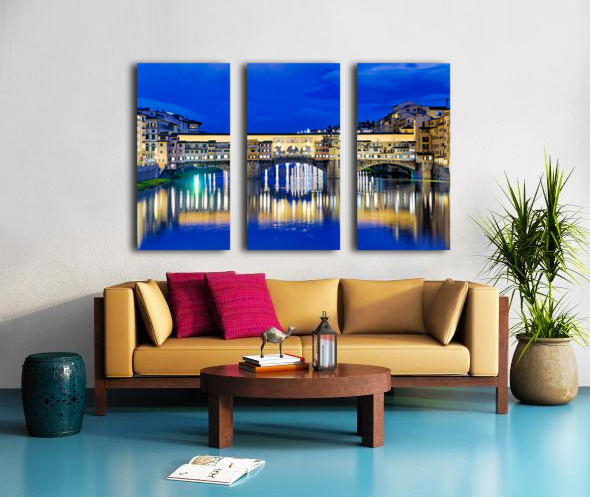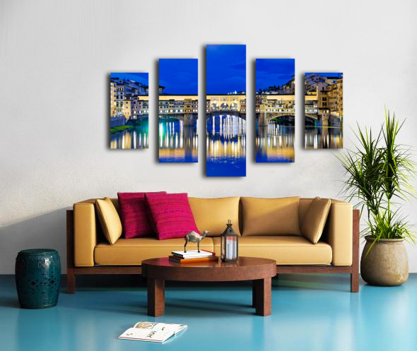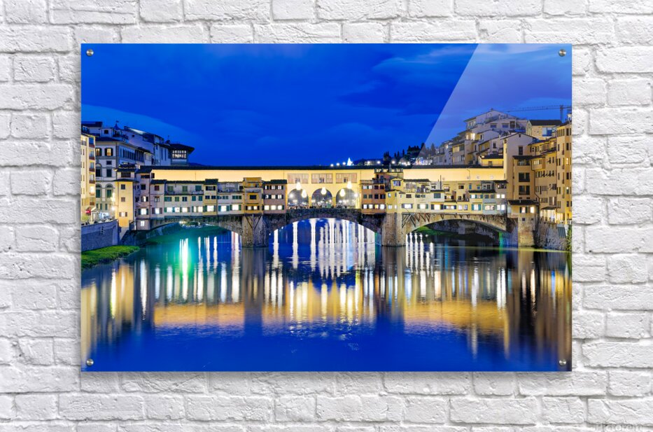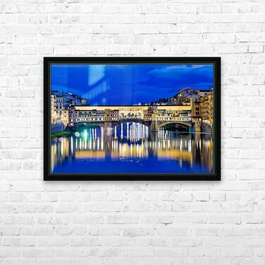 Ponte Vecchio bridge in Florence under evening sky over river Ar Picture Frame Printing