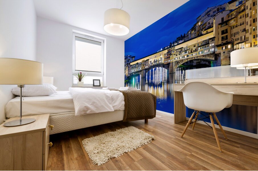 ABOUT THIS ARTWORK: PONTE VECCHIO BRIDGE IN FLORENCE UNDER EVENING SKY OVER RIVER AR
