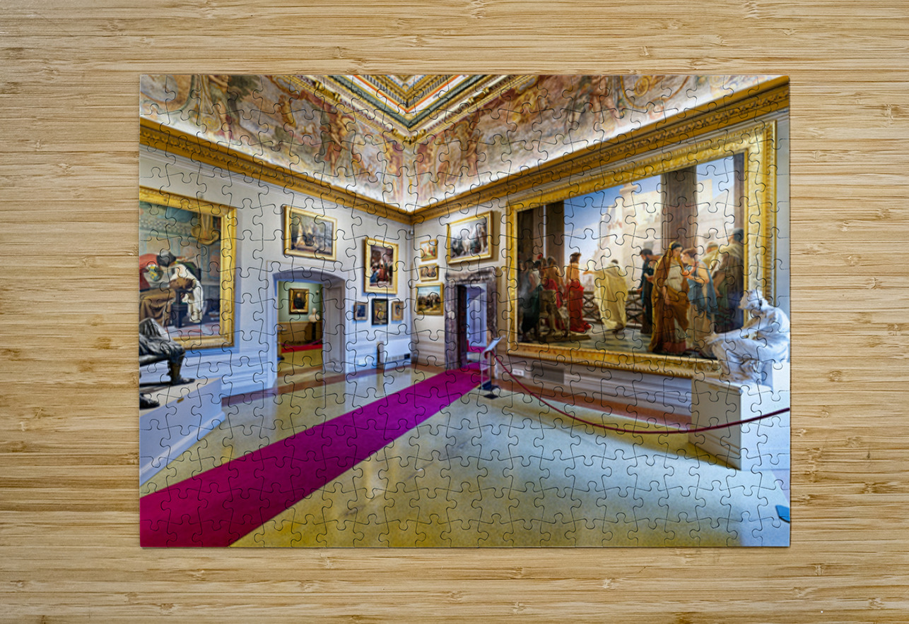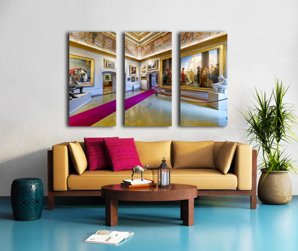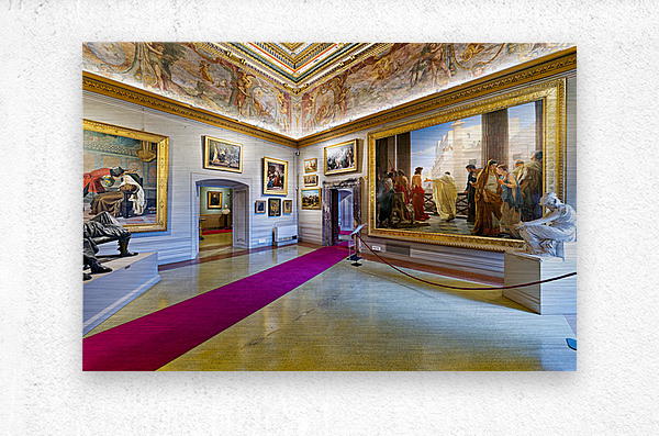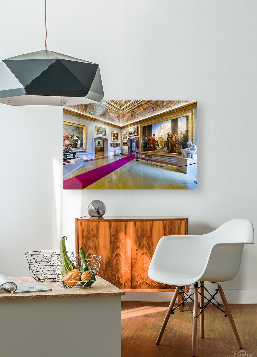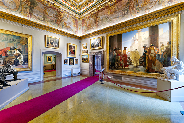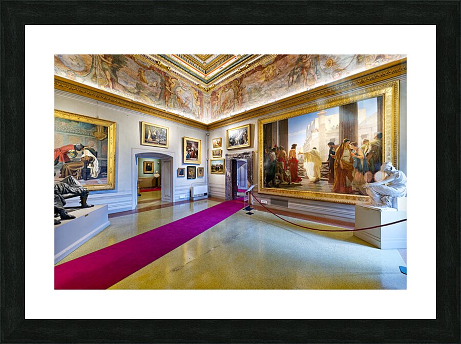 Visitors explore Palatine Gallery in Palazzo Pitti enjoying art and sculptures. The museum displays historical works and features grand architecture.