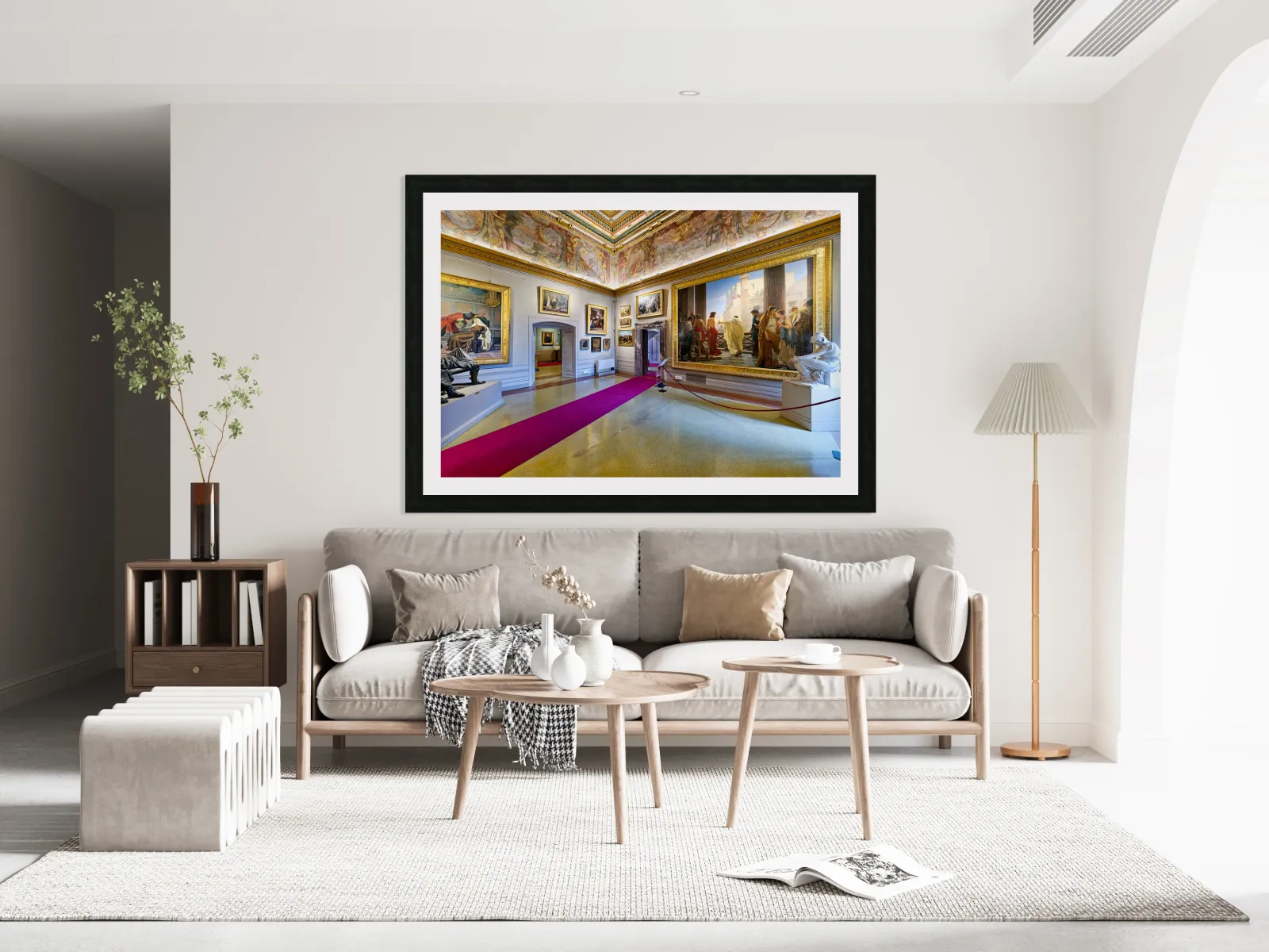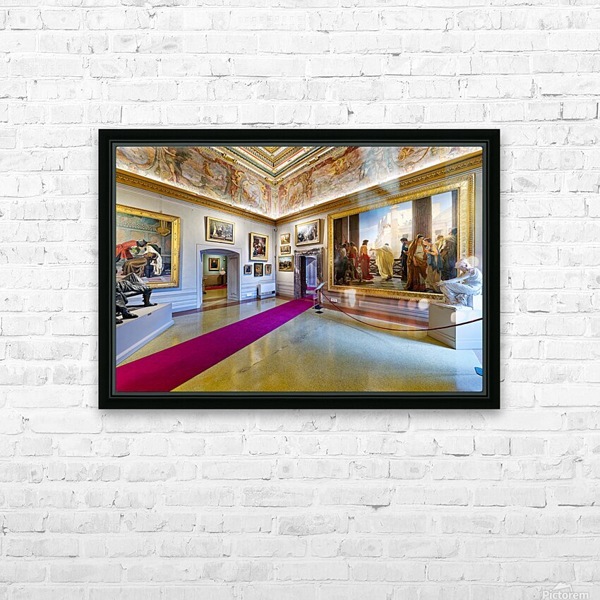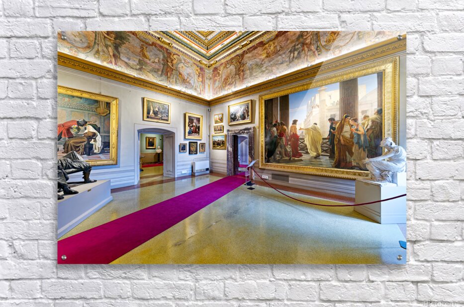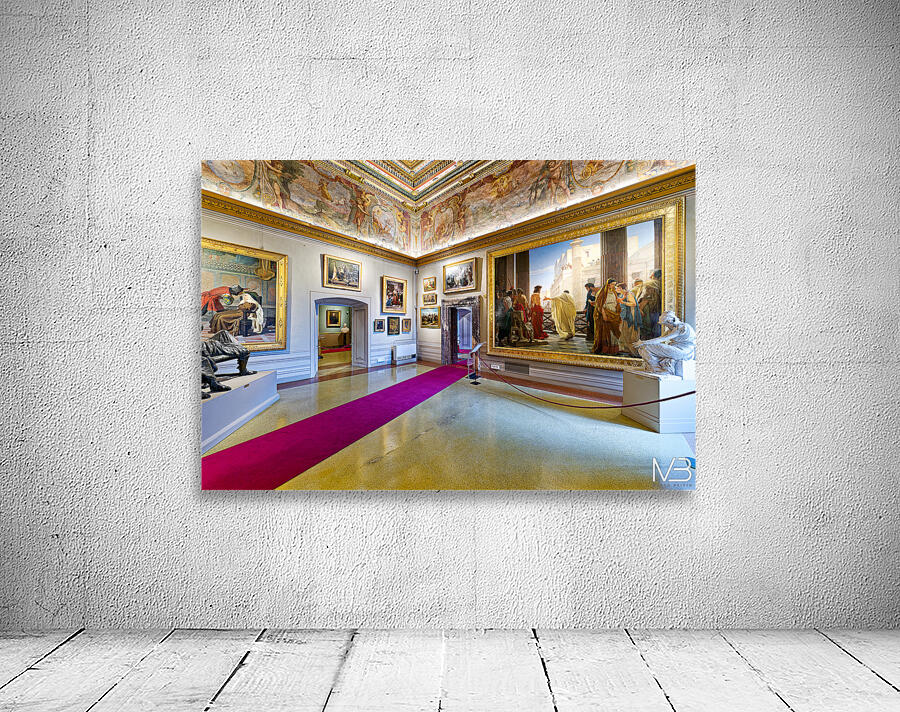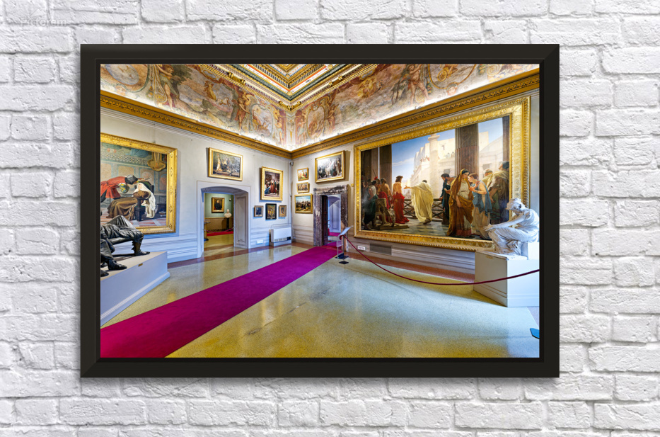 Visitors explore Palatine Gallery in Palazzo Pitti enjoying art and sculptures. The museum displays historical works and features grand architecture.