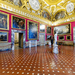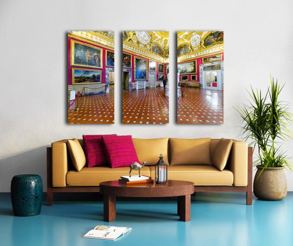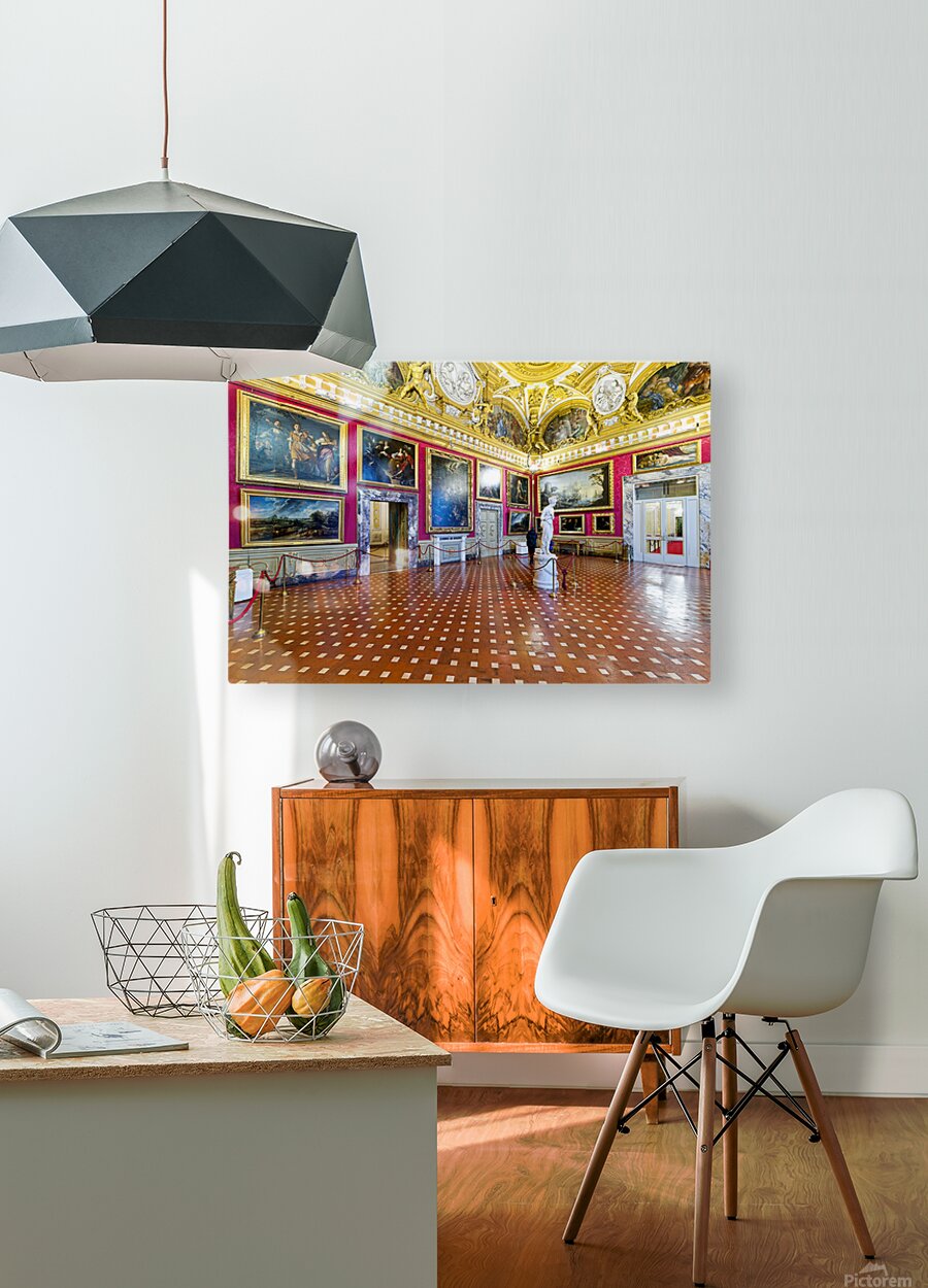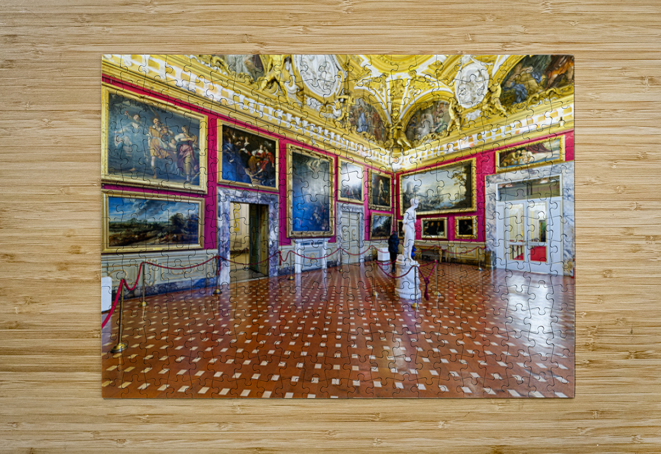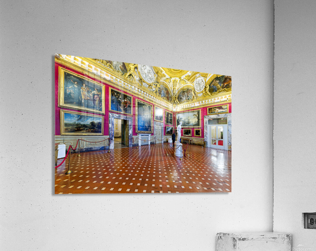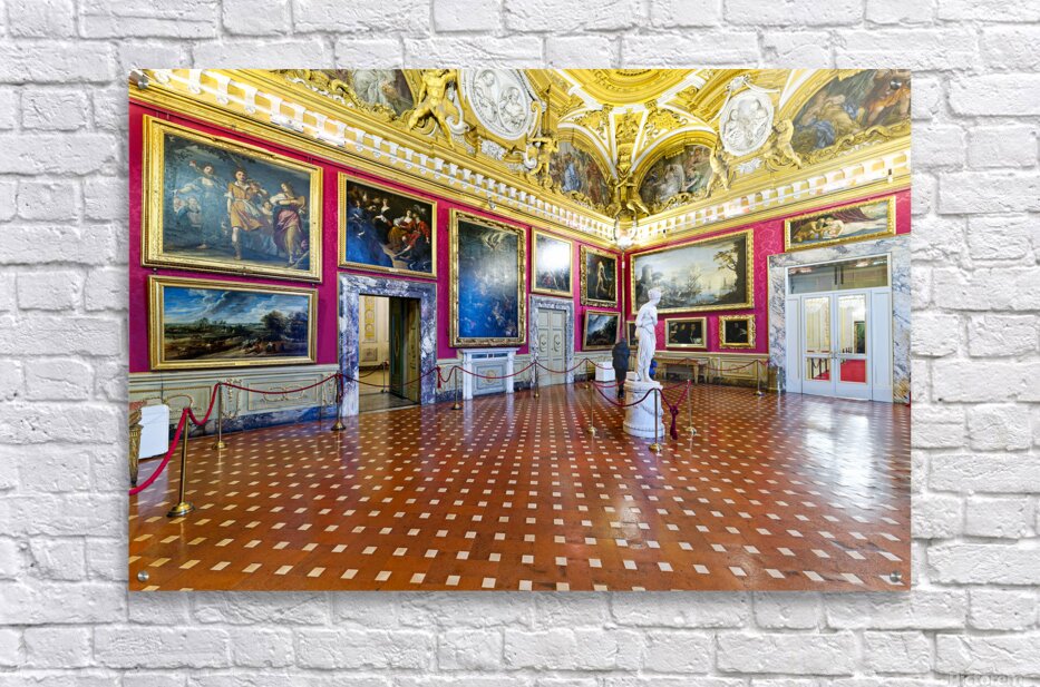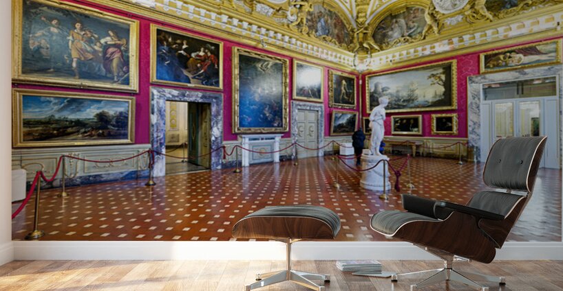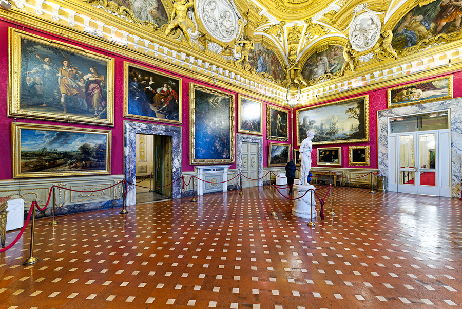 Palazzo Pitti displays the statue of Venere by Antonio Canova and paintings in the Palatine Gallery. Visitors admire the art and architecture.