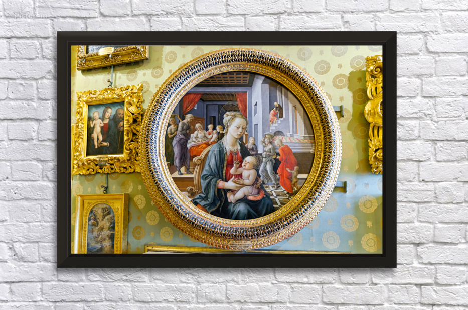 Fra Filippo Lippis Madonna with Child is displayed in the Palatine Gallery of Palazzo Pitti. The artwork shows a mother holding her child.