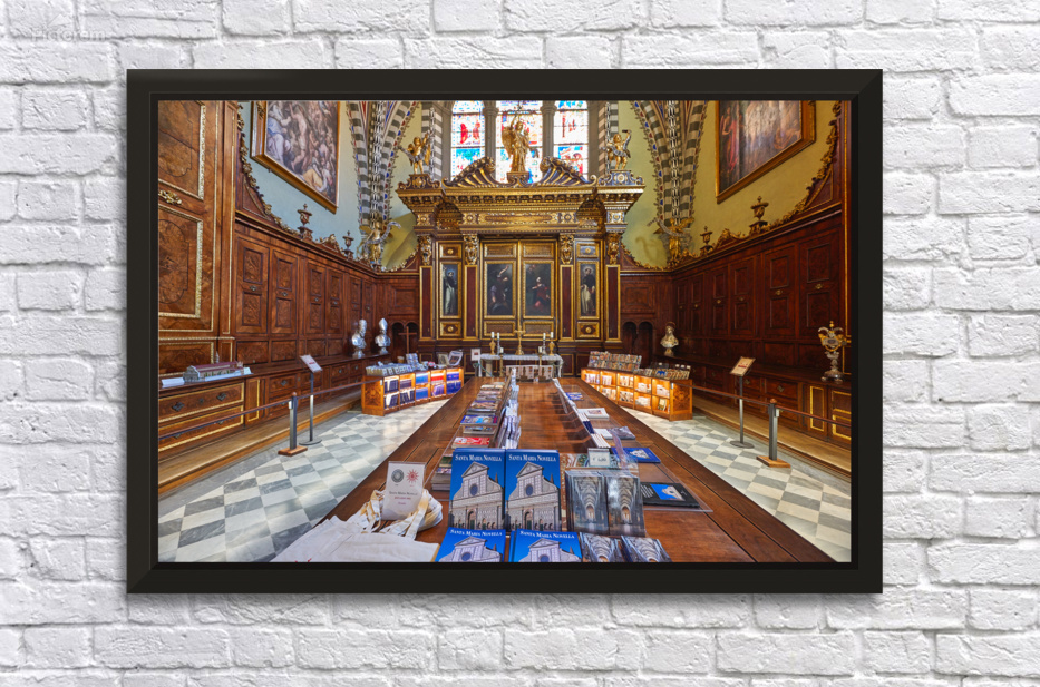 People walk through Santa Maria Novella church in Florence Tuscany looking at the art and features of the historical site.