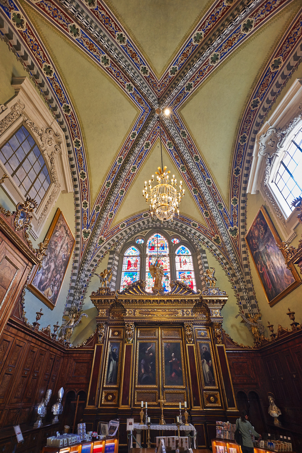 Visitors explore the interior of Santa Maria Novella Church in Florence. The beautiful architecture and artworks draw attention.