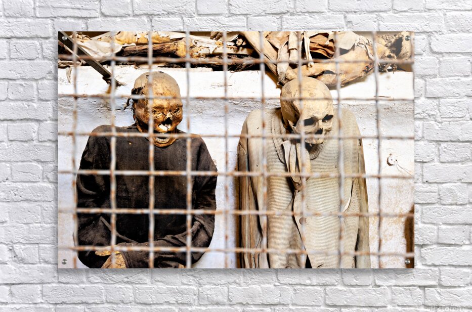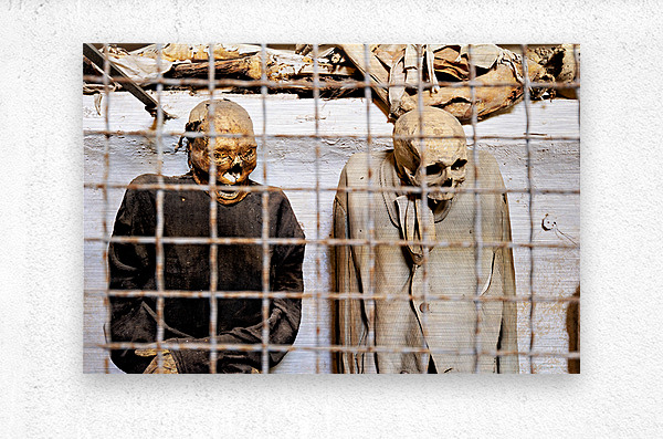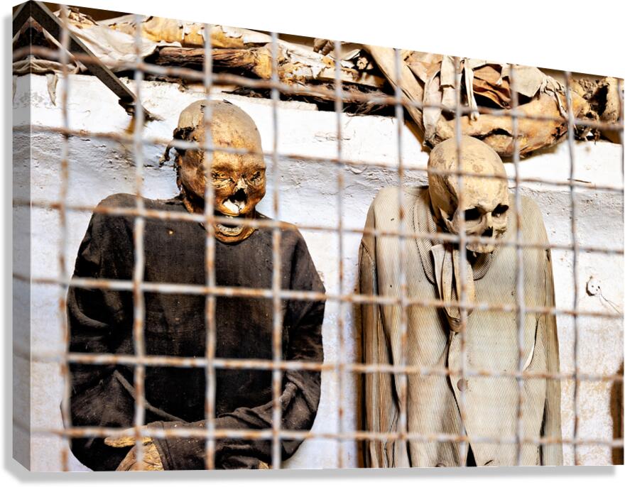 ABOUT THIS ARTWORK: VISITORS SEE MUMMIES IN CAPUCHIN CATACOMBS IN PALERMO SICILY