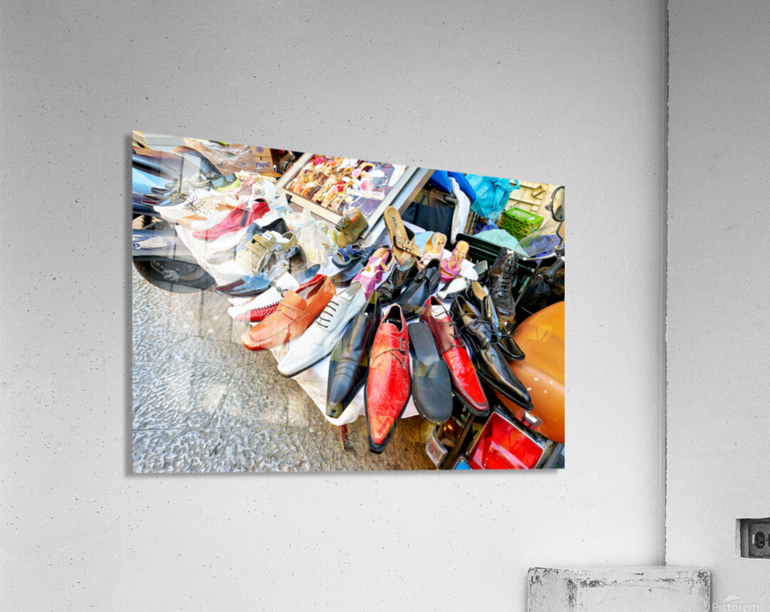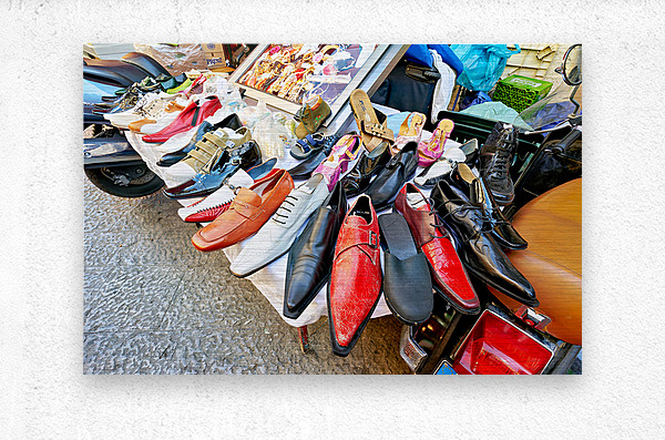 ABOUT THIS ARTWORK: FOOTWEAR DISPLAY AT BALLARO STREET MARKET IN PALERMO SICILY