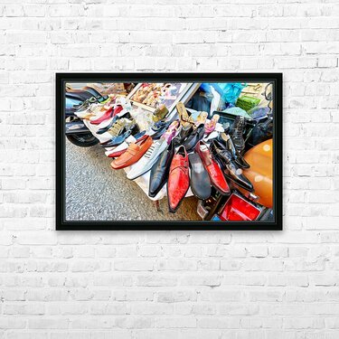 Get this artwork "Footwear display at Ballaro street market in Palermo Sicily" in a framed print.
