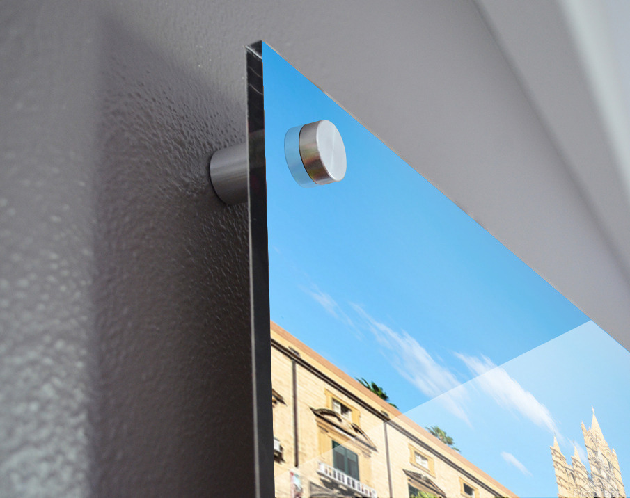 Printed to the edge - Ready to hang - provided with 4 premium polished aluminum stand off ( wall screws and mounting hardware provided )