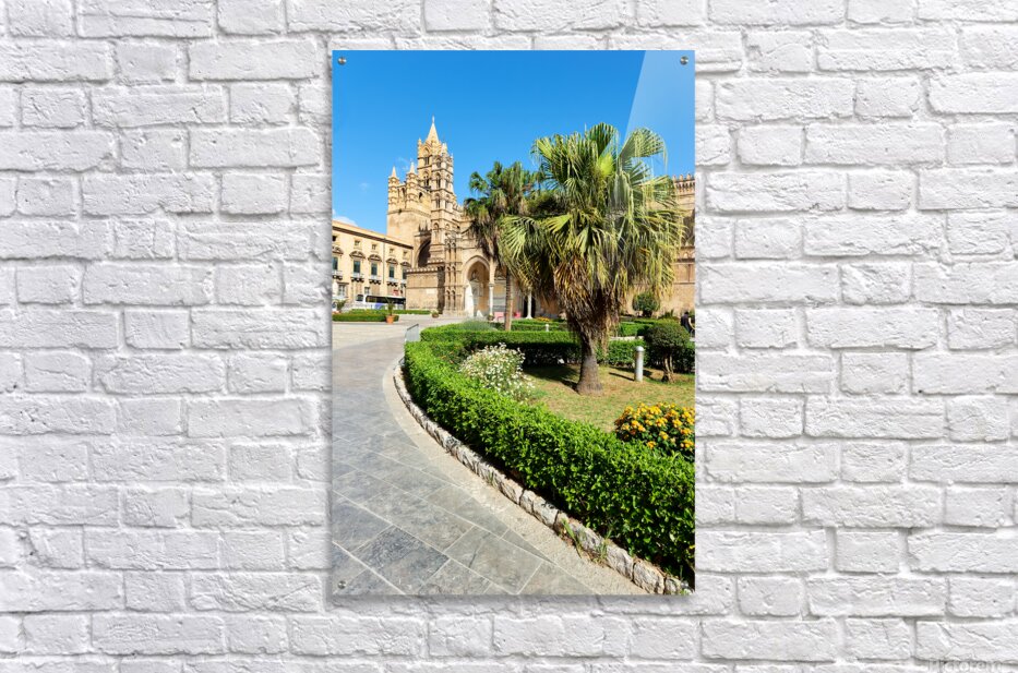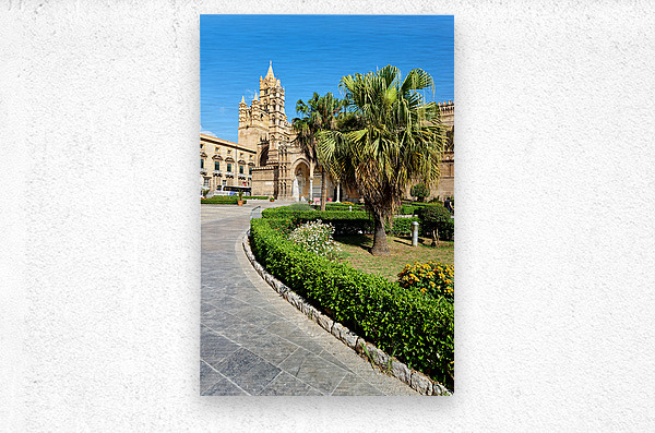 ABOUT THIS ARTWORK: PALERMO CATHEDRAL SURROUNDED BY GARDENS IN SICILY ITALY
