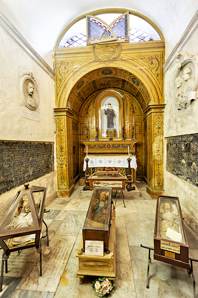 Visitors look at the Capuchin Catacombs in Palermo where mummies and bodies are displayed. This site shows a unique part of local history.