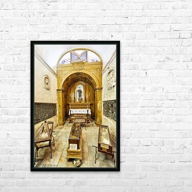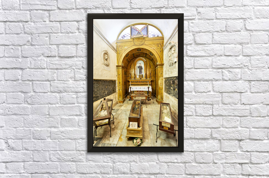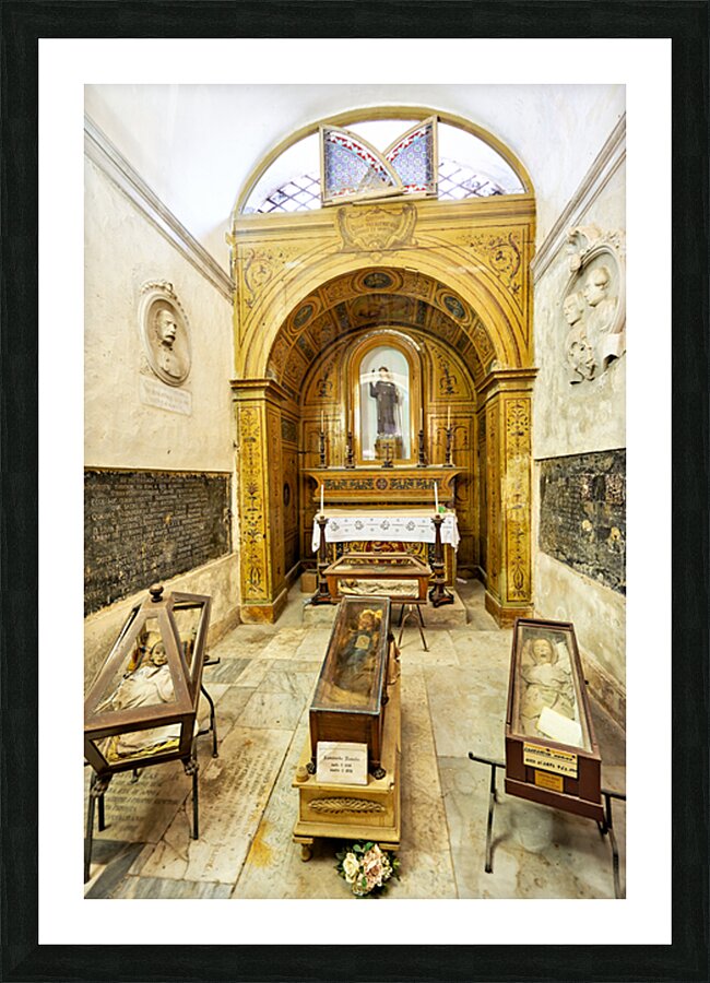 "Exploring capuchin catacombs in palermo sicily italy" in a framed print.