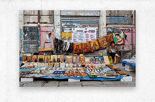 MARKET SCENE IN PALERMO SICILY WITH LOCAL CRAFTS AND ART