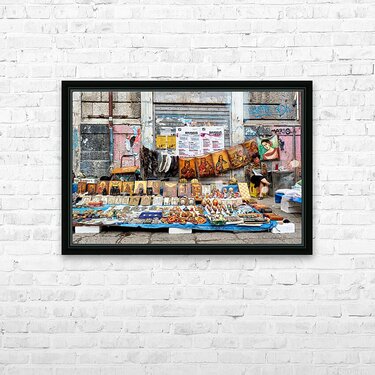 Market scene in Palermo Sicily with local crafts and art Picture Frame Printing