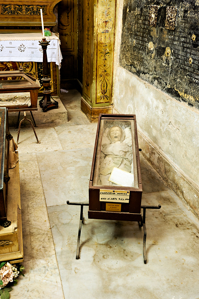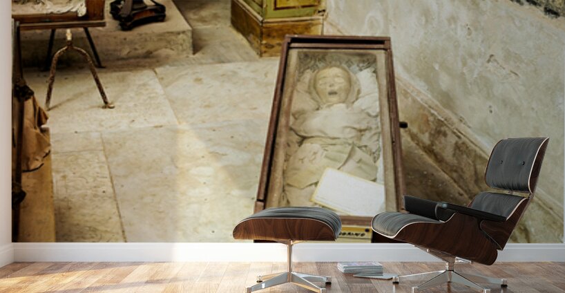 Visitors observe preserved remains in glass coffins at the Capuchin Catacombs in Palermo Sicily revealing local burial practices.