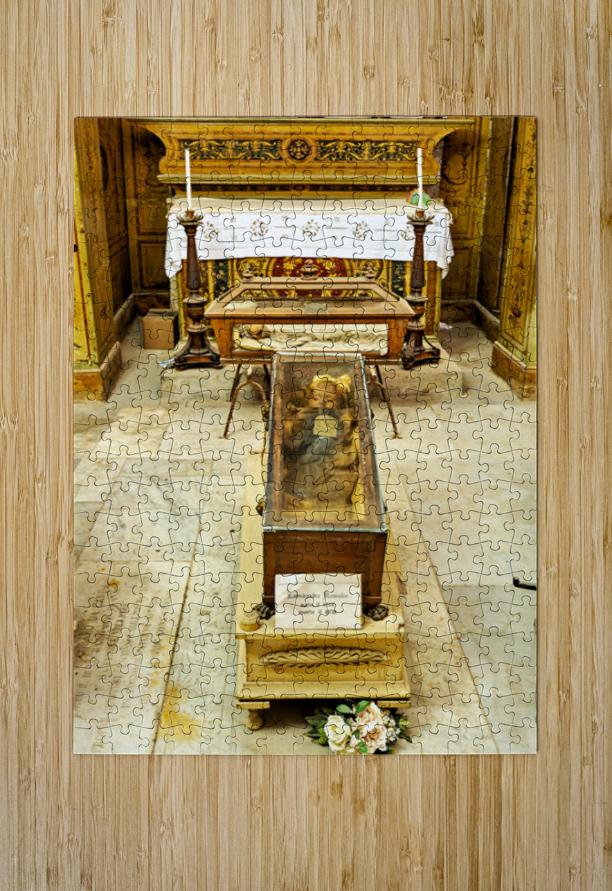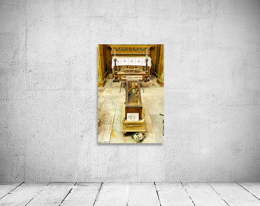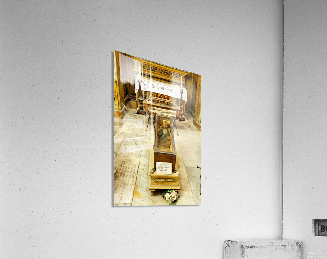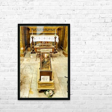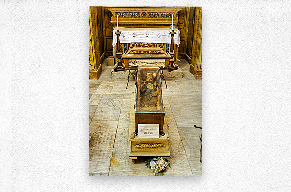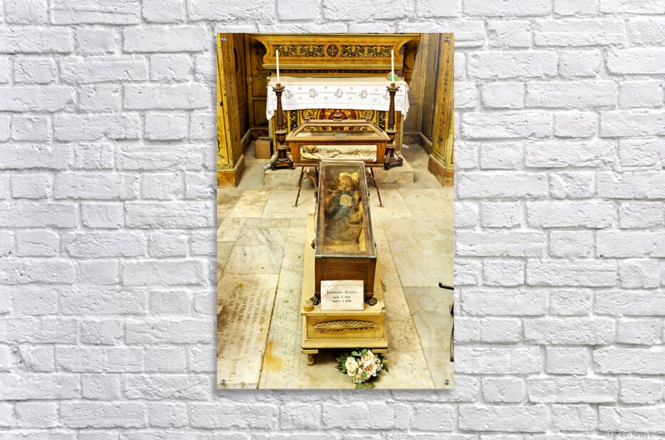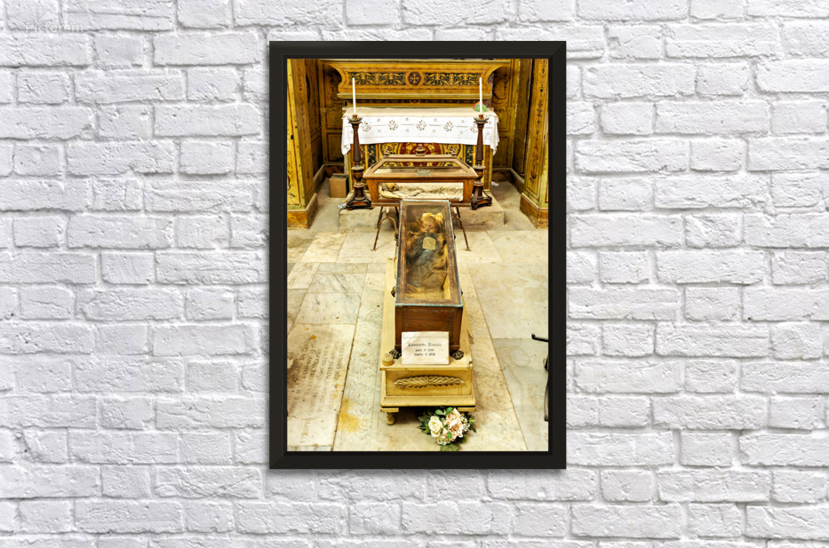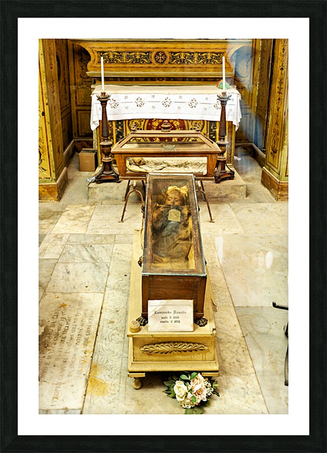 "Visiting Capuchin Catacombs in Palermo Italy with human remains" in a framed print.