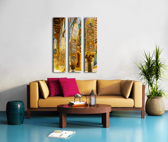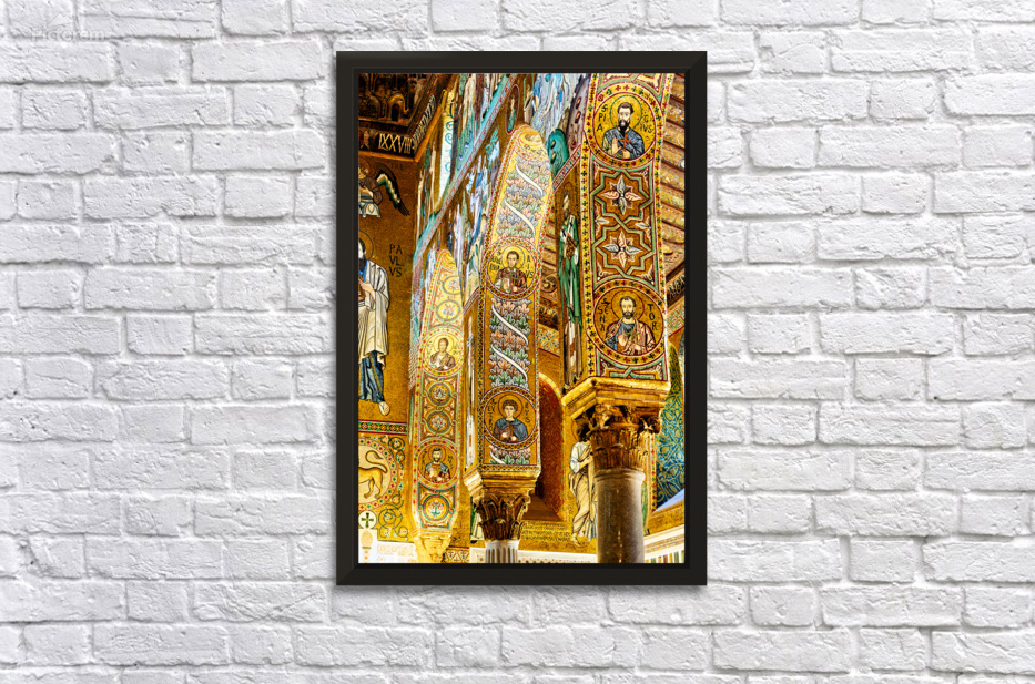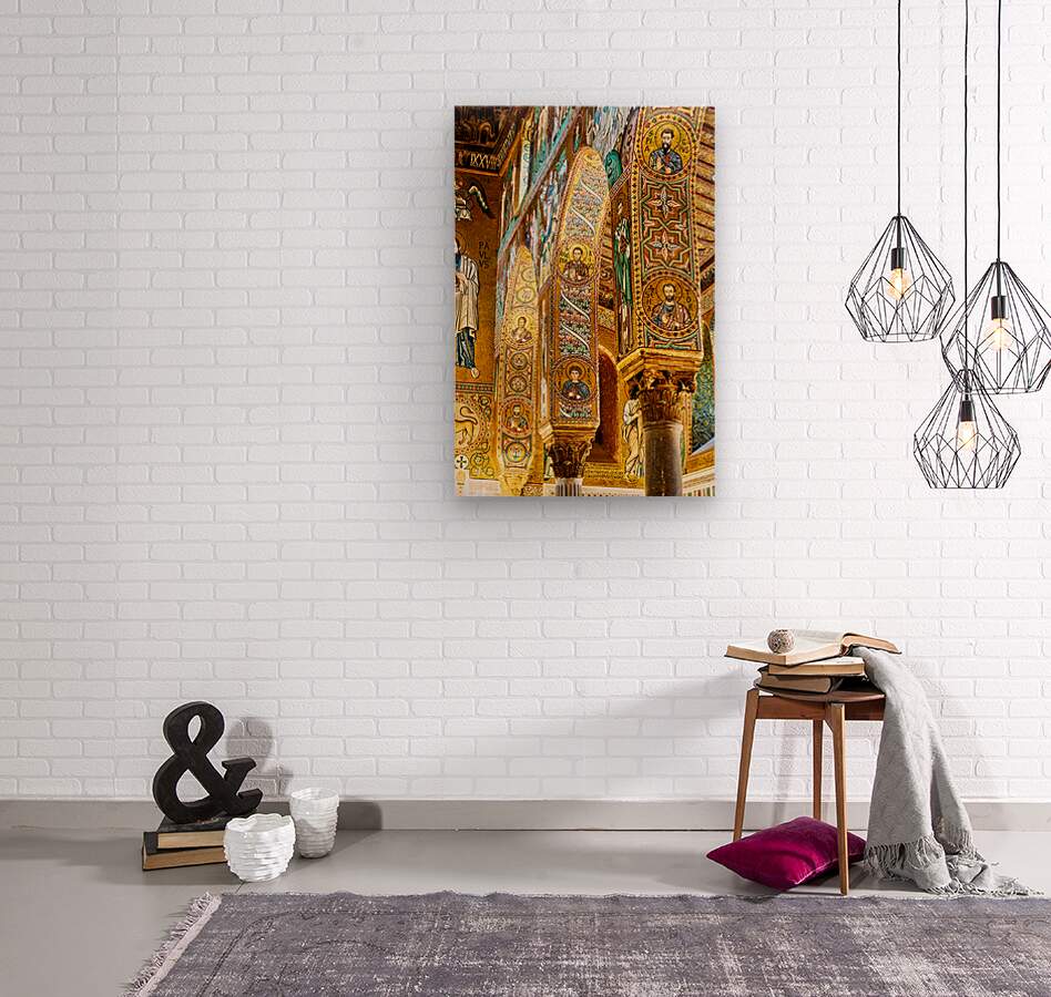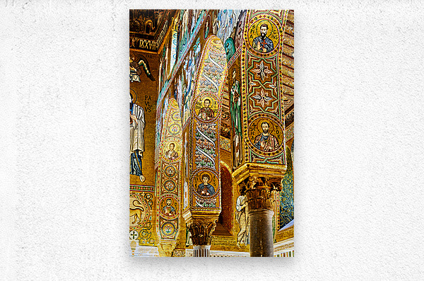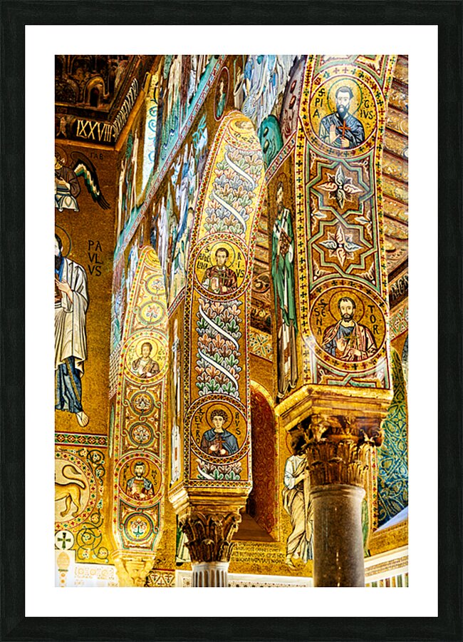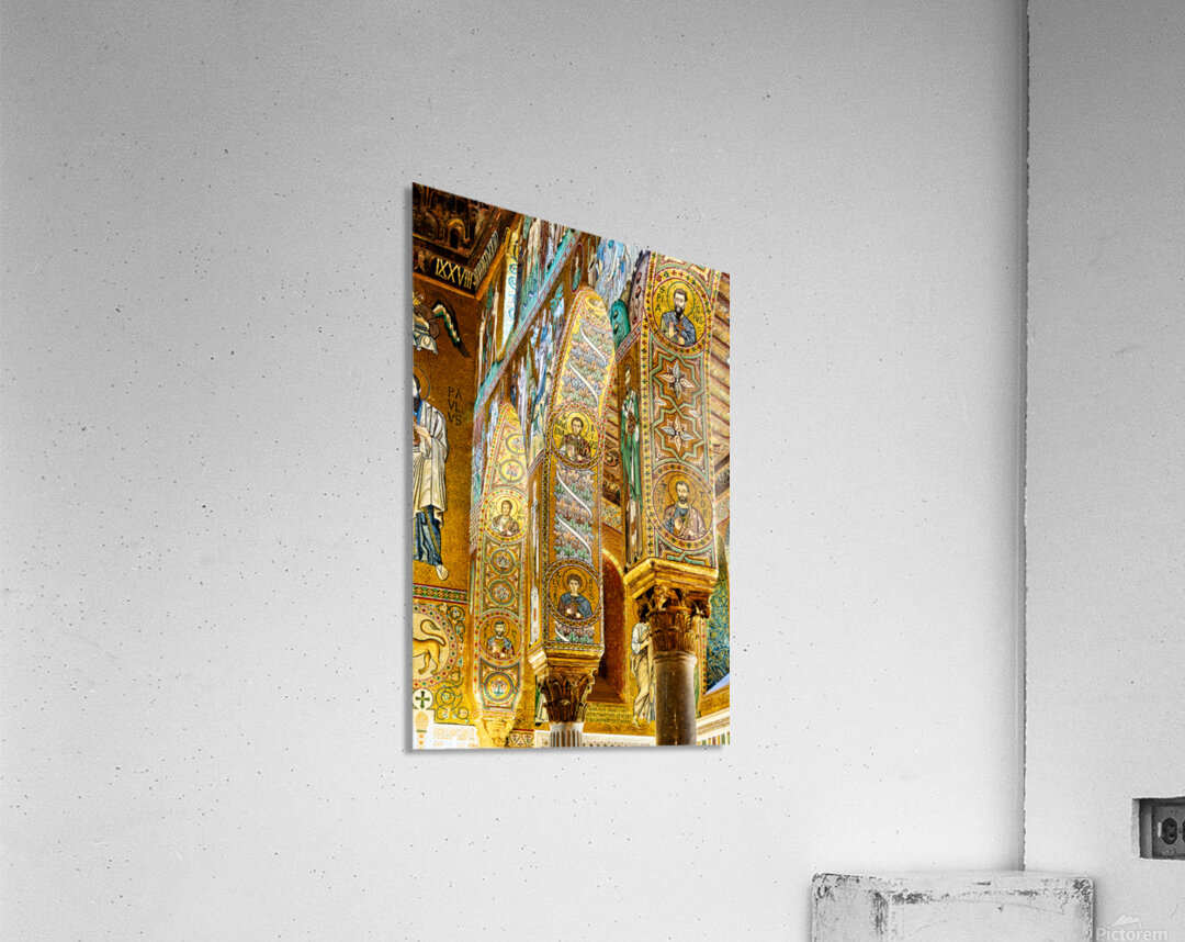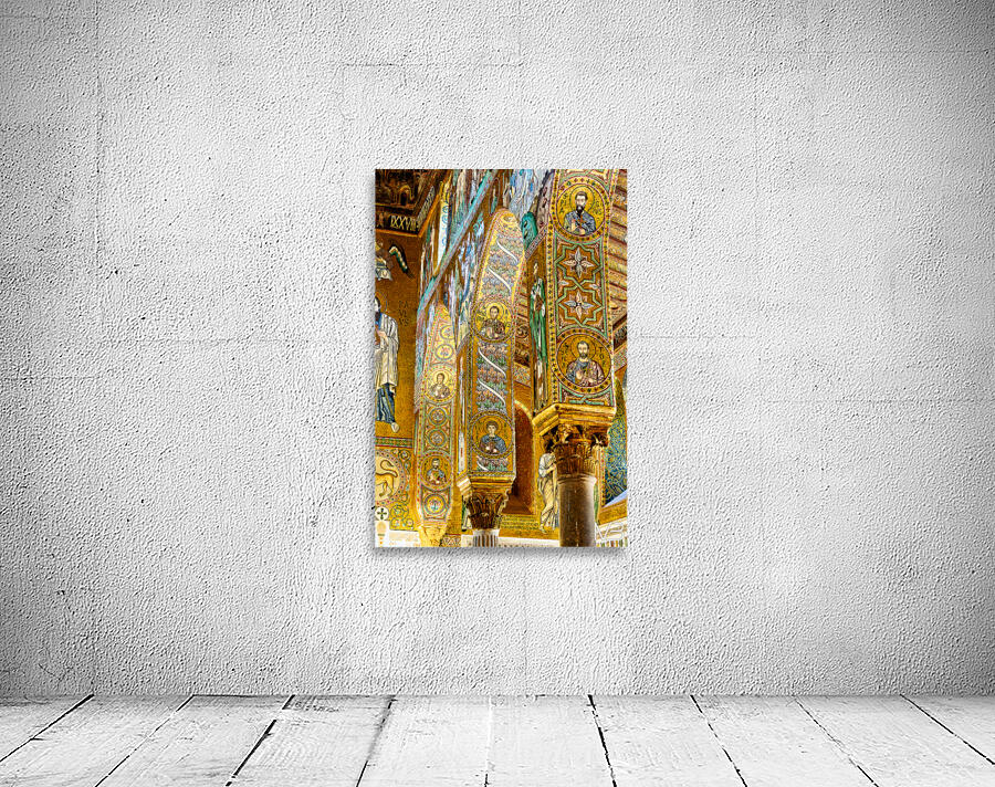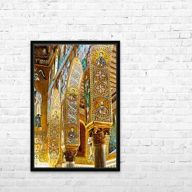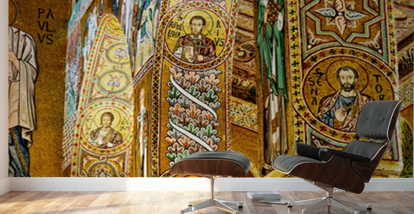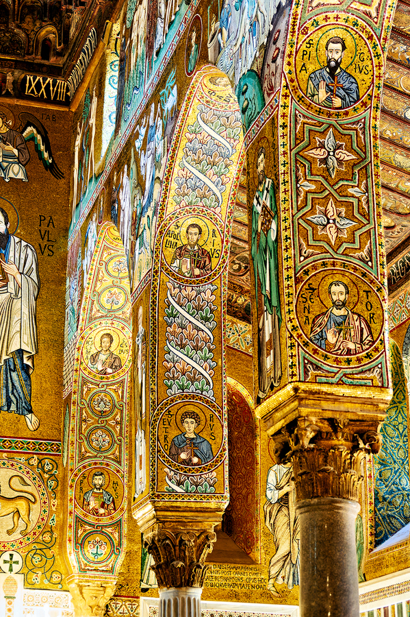 Cappella Palatina in Palermo shows colorful mosaics on the walls and arches inside. Visitors admire the art while exploring the historic site.