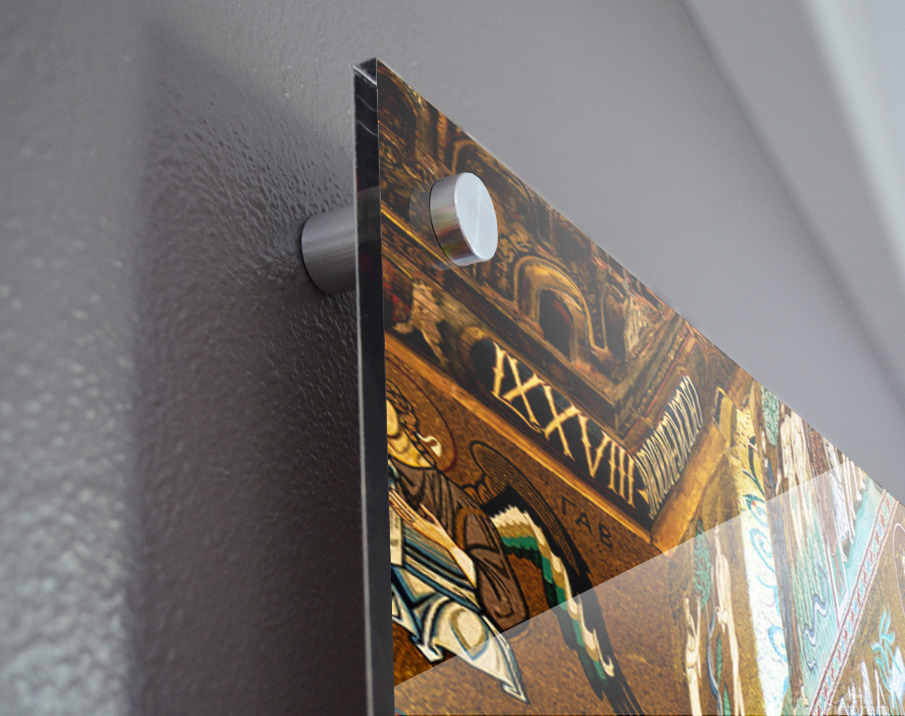 Printed to the edge - Ready to hang - provided with 4 premium polished aluminum stand off ( wall screws and mounting hardware provided )