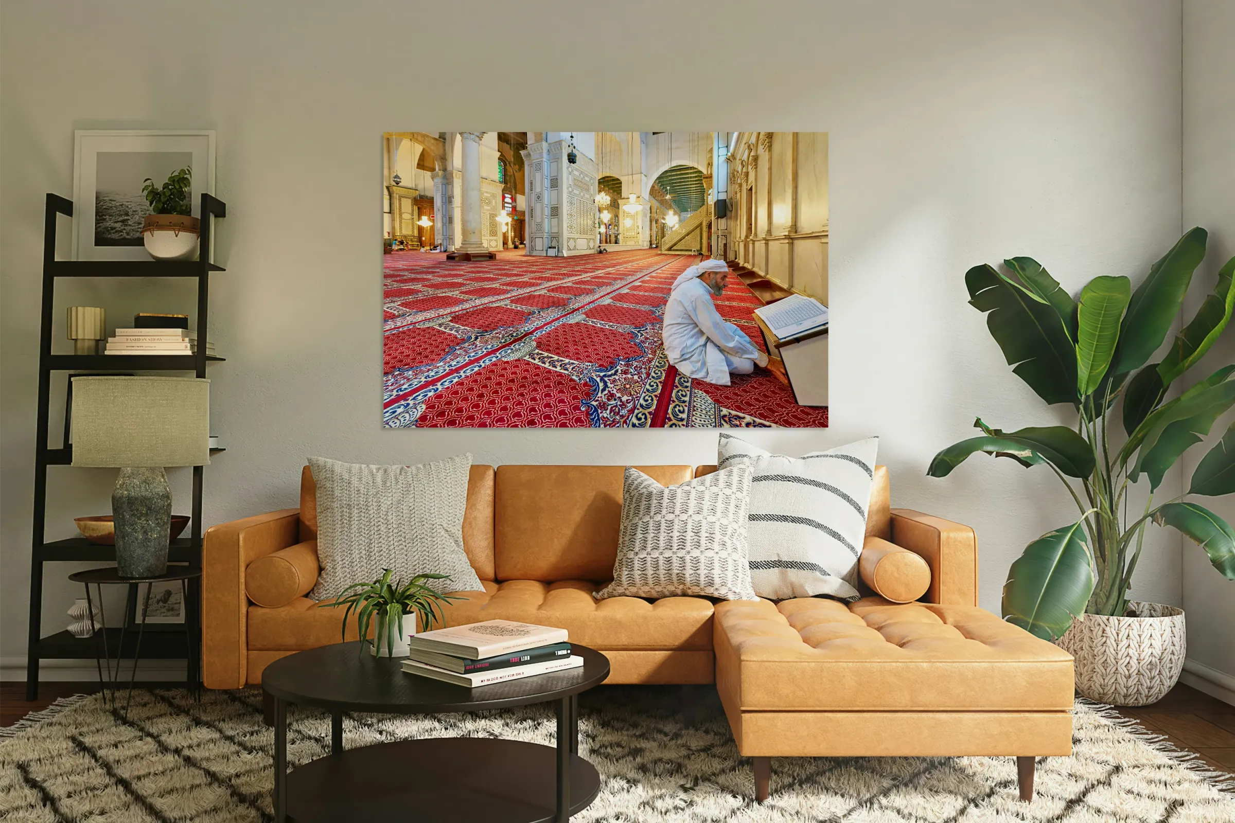 Visitor reading Quran in Umayyad Mosque in Damascus Frame print