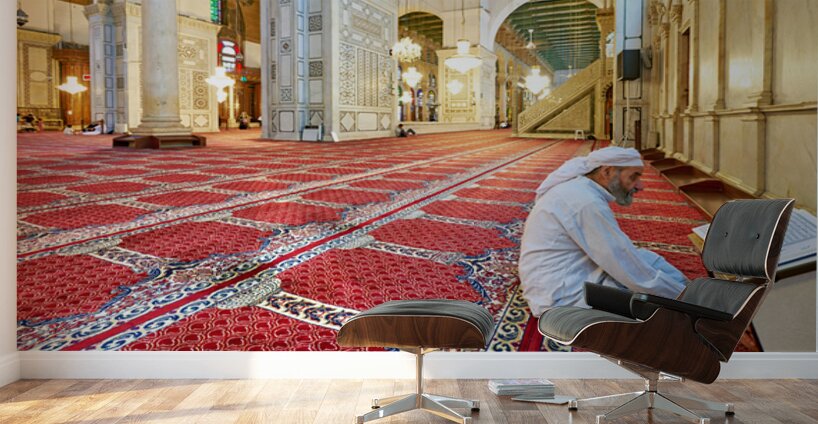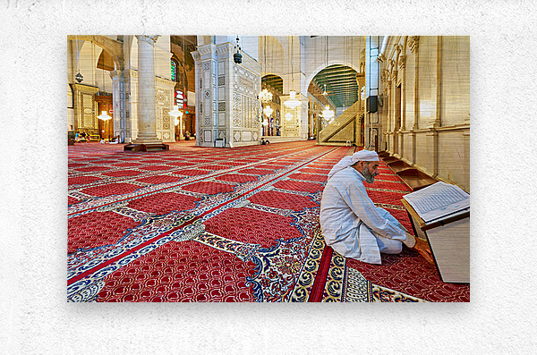 Get this artwork "Visitor reading Quran in Umayyad Mosque in Damascus" in a framed print.