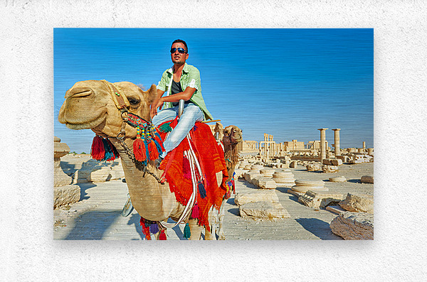Get this artwork "Camel driver in ancient Palmyra leading a tourist ride" in a framed print.