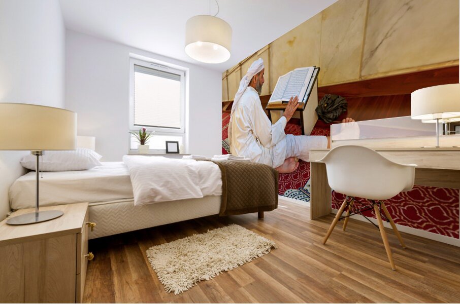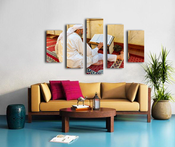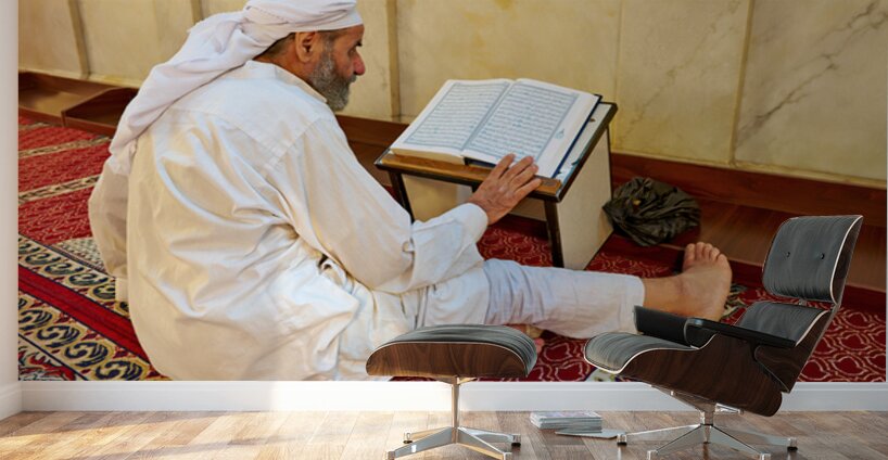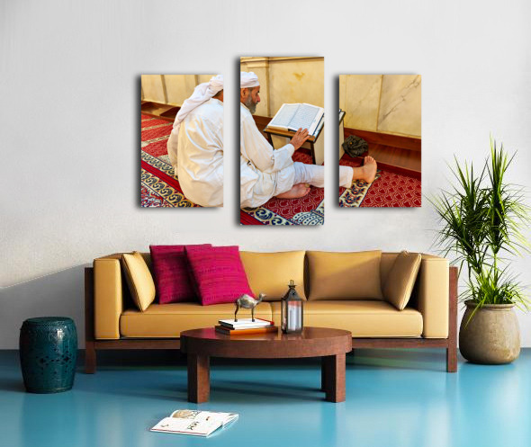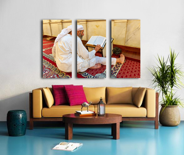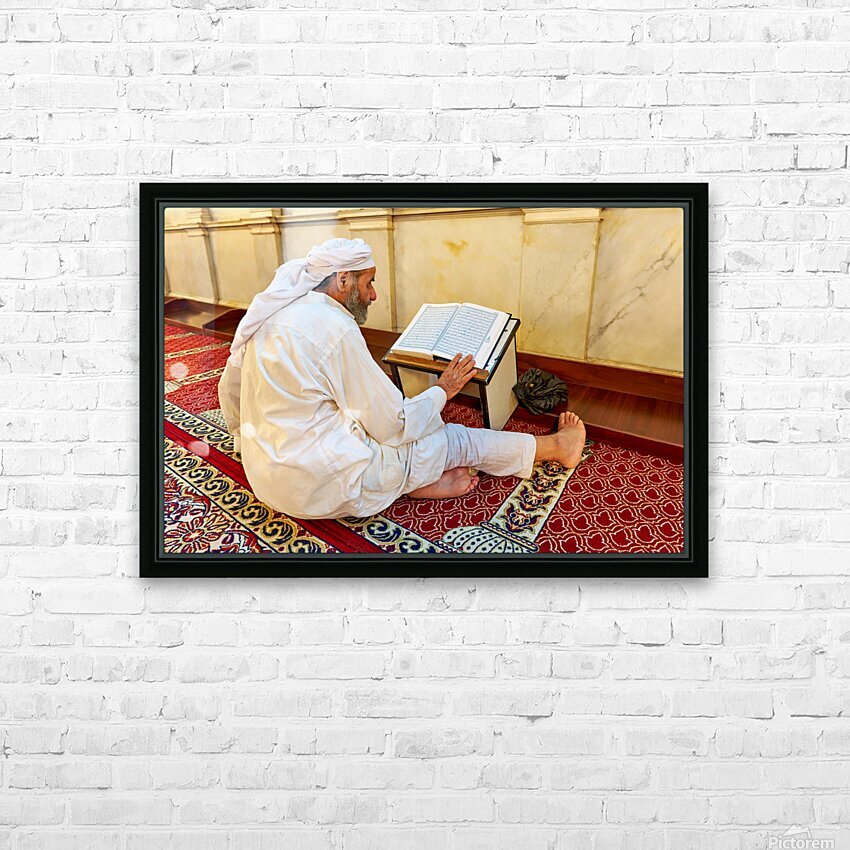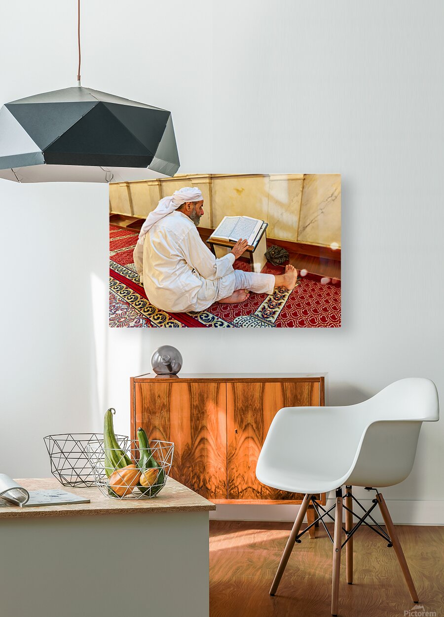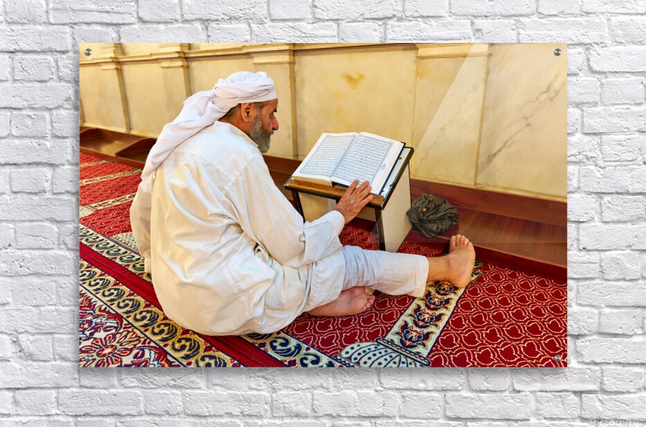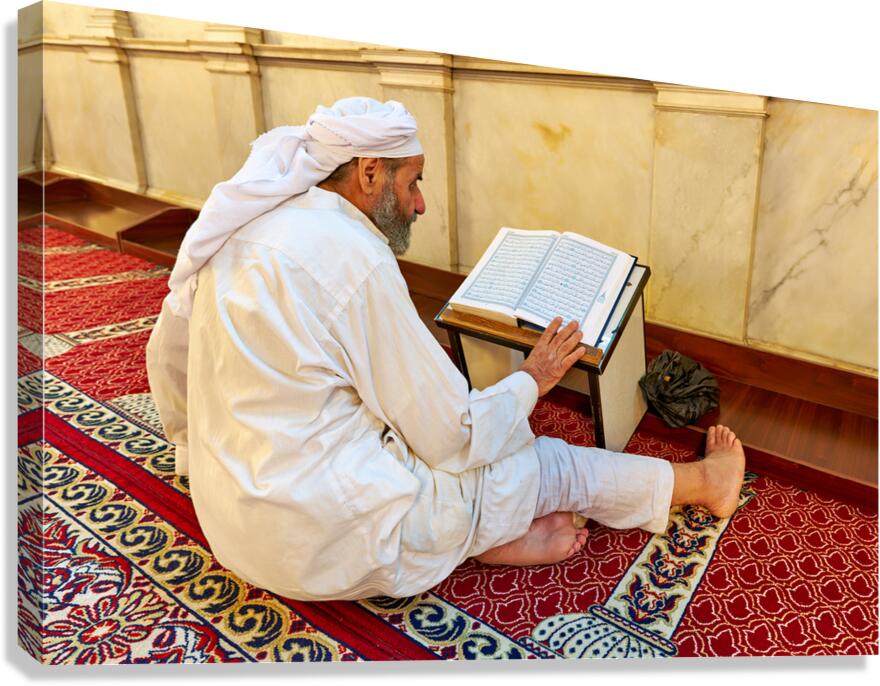 Get this artwork "Elderly man reading Quran inside Umayyad Mosque in Damascus Syri" in a framed print.