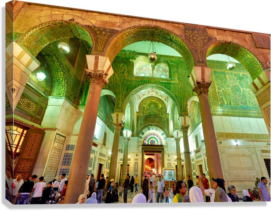 Get this artwork "Exploring the Umayyad Mosque in Damascus during evening hours" in a framed print.