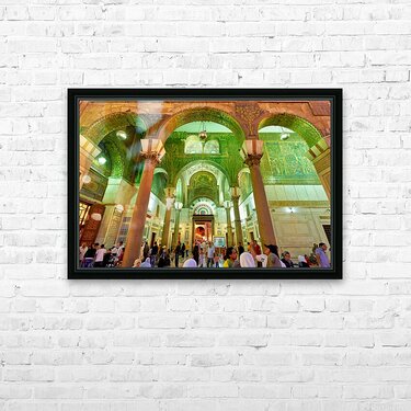 Exploring the Umayyad Mosque in Damascus during evening hours Frame print