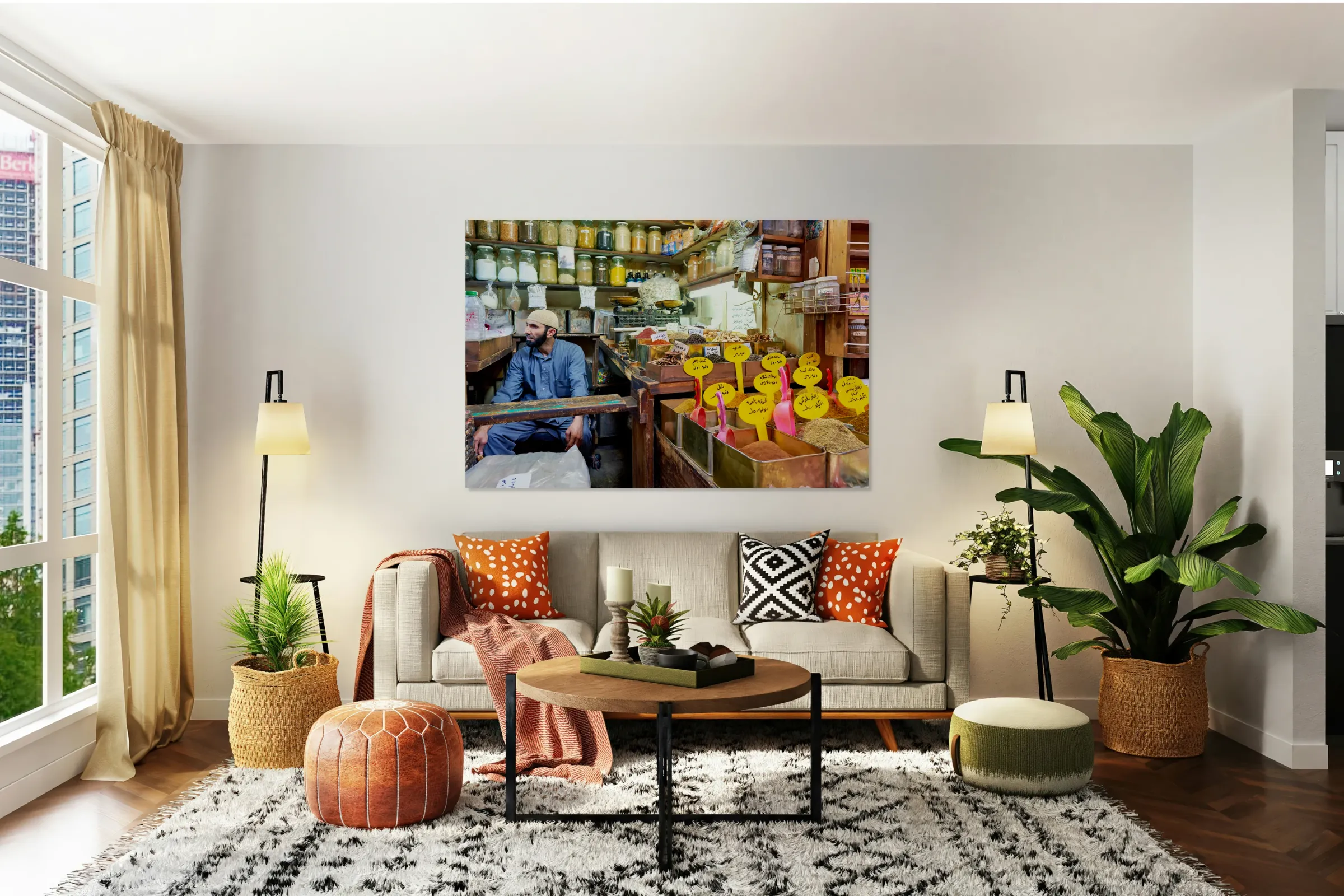 Market scene in Al Hamidiyah Souq showing spices and vendor in S Marco Brivio Puzzle printing