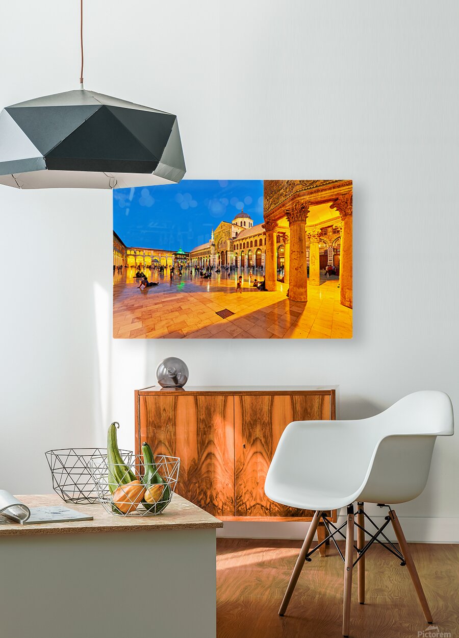 Get this artwork "Visitors enjoy evening time at Umayyad Mosque in Damascus Syria" in a framed print.