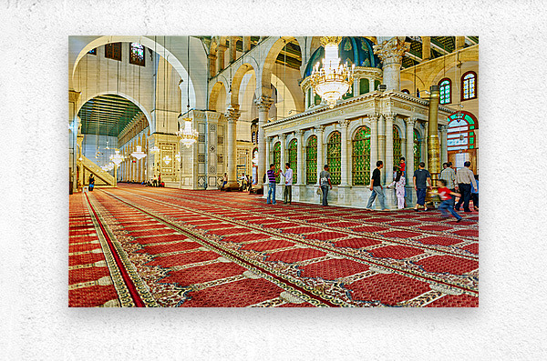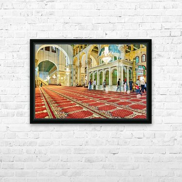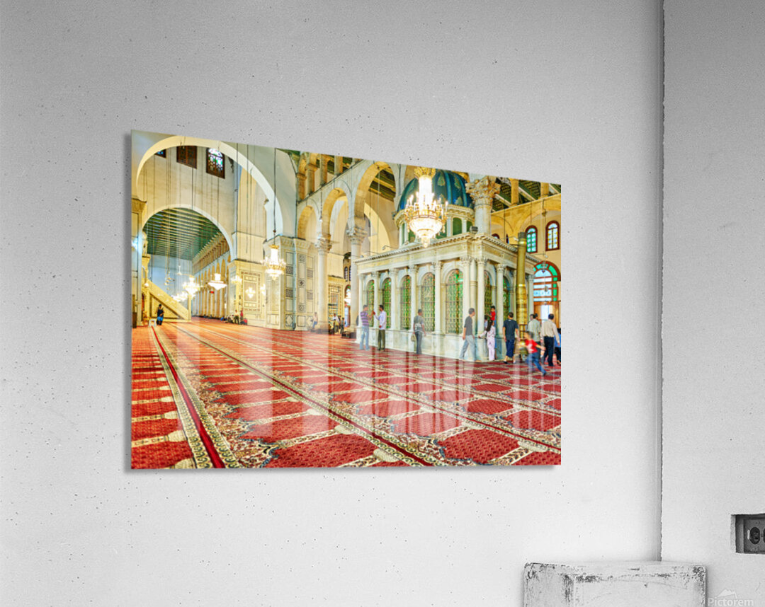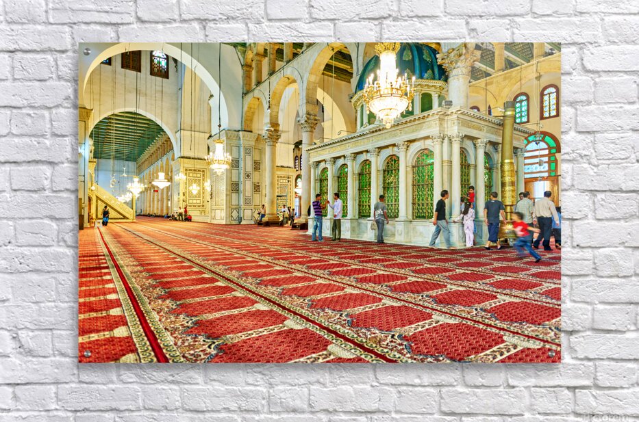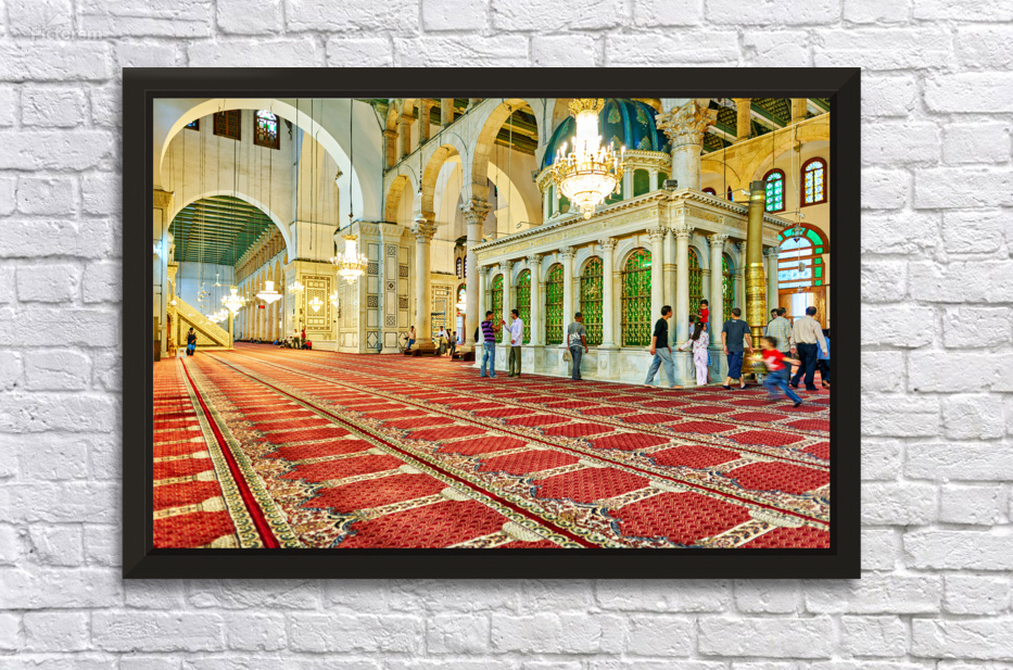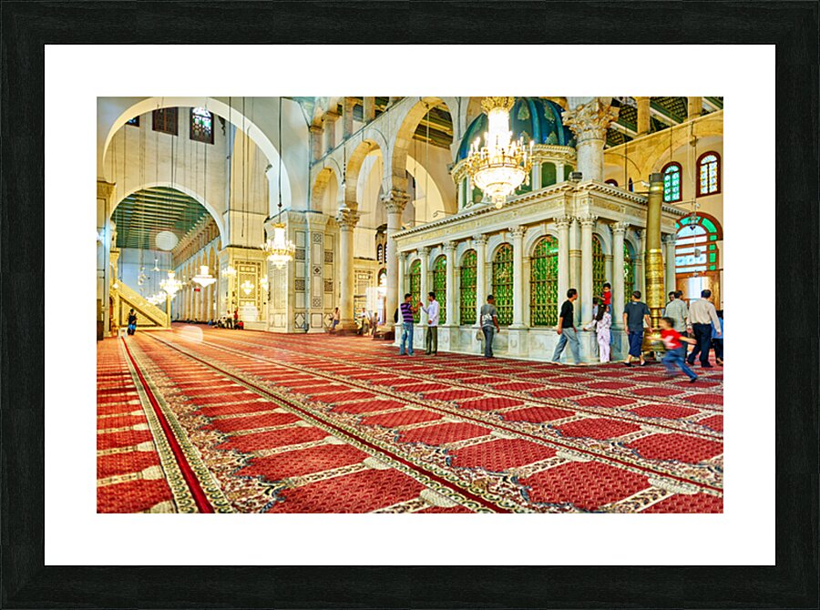 "Visitors explore the interior of Umayyad Mosque in Damascus Syr" in a framed print.