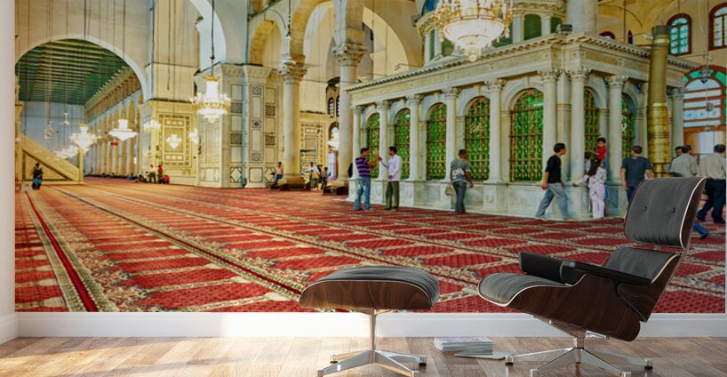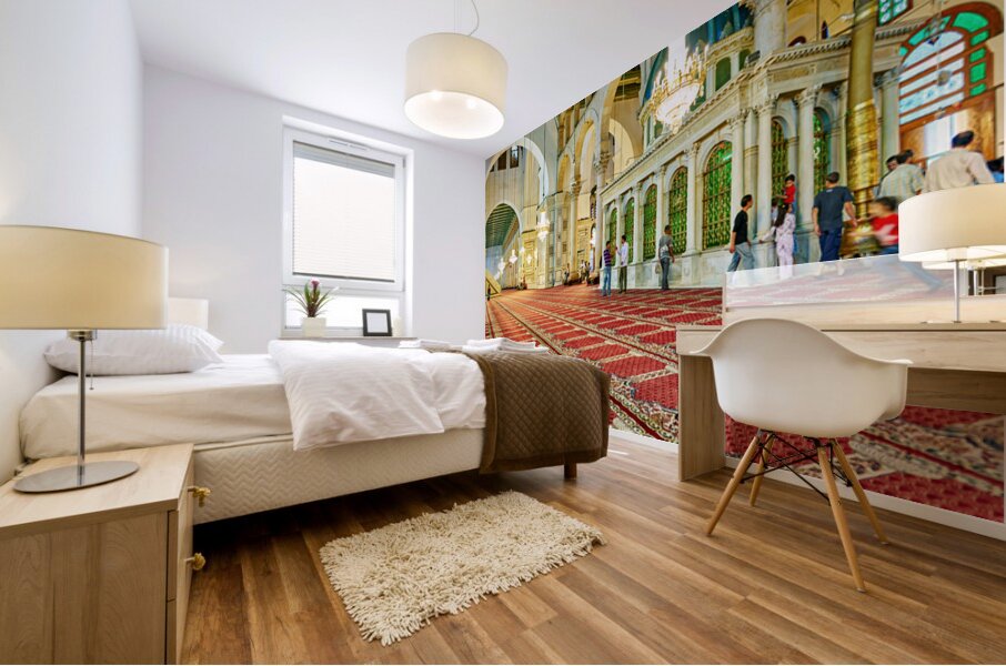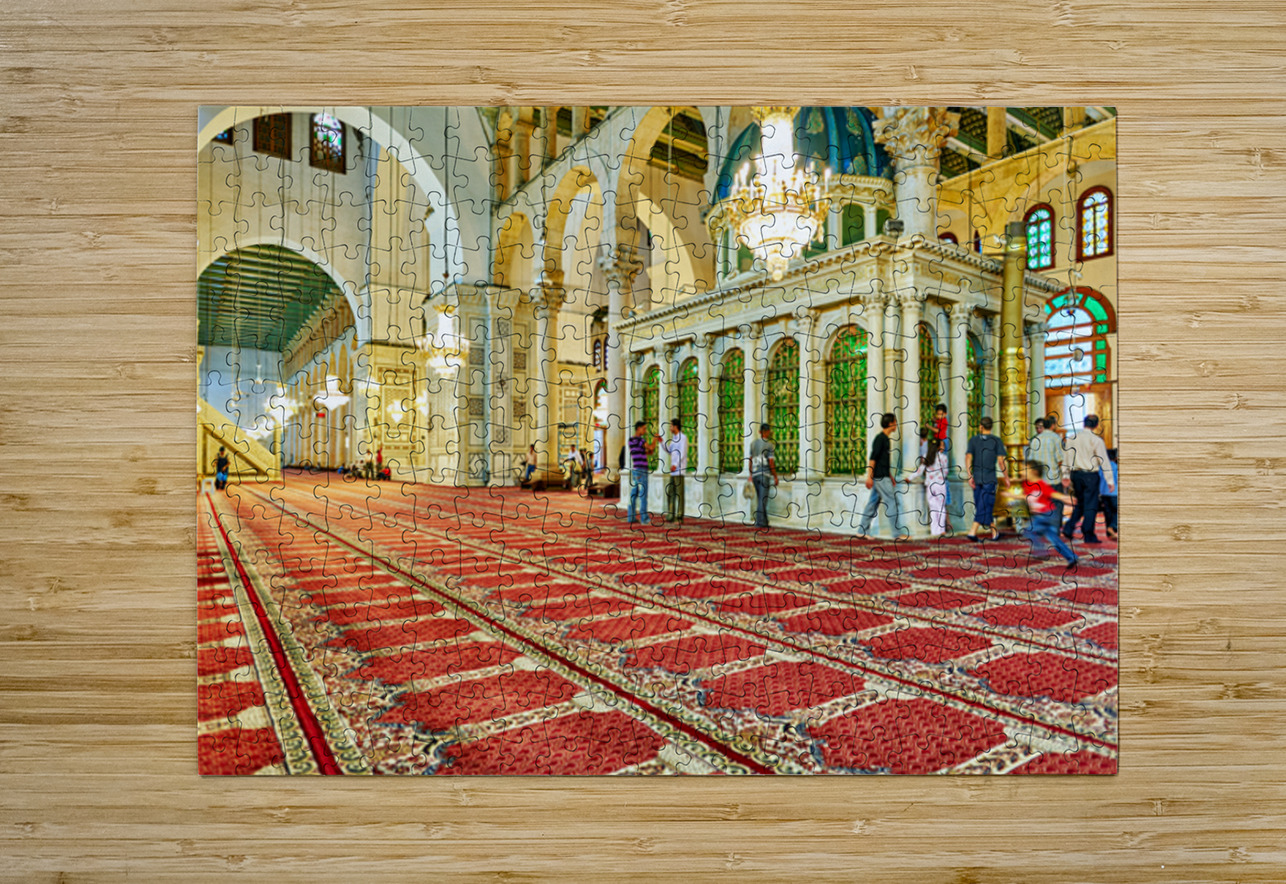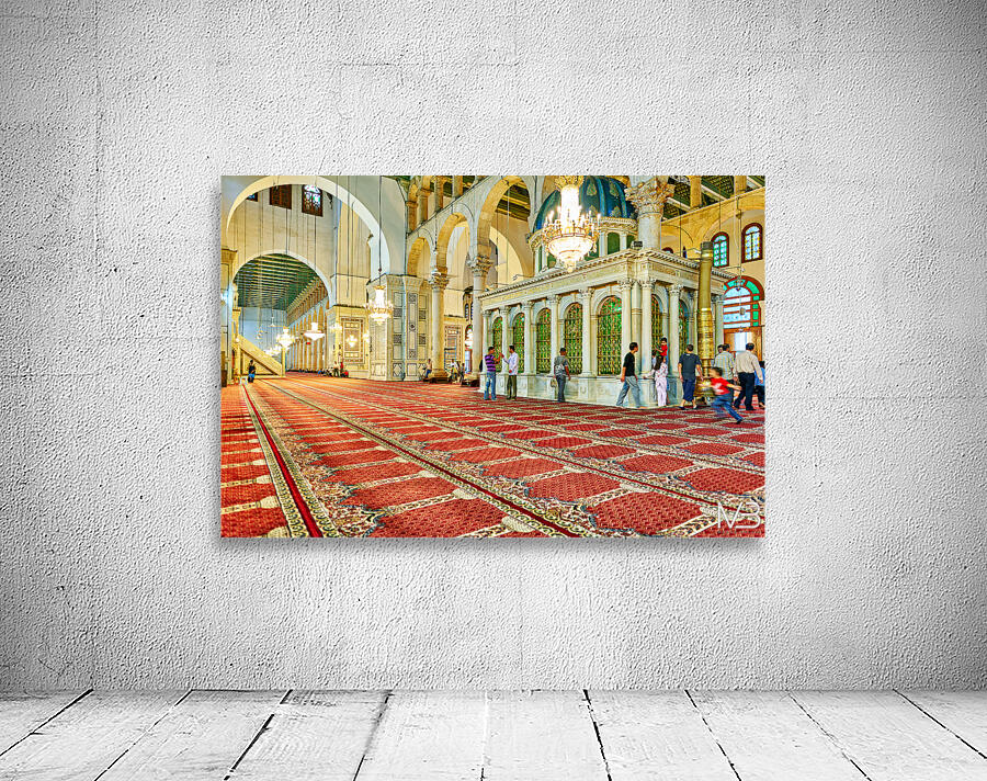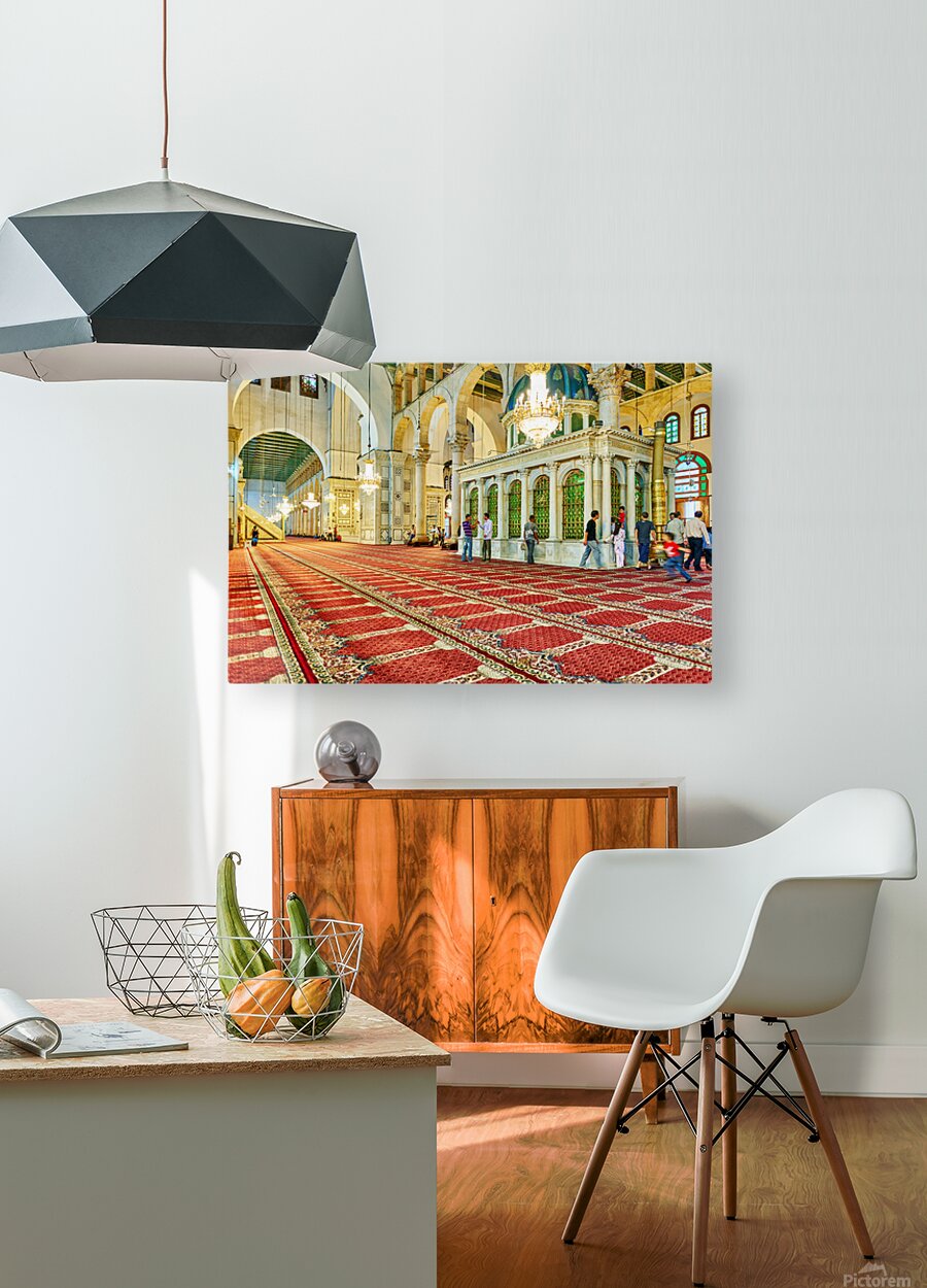 "Visitors explore the interior of Umayyad Mosque in Damascus Syr" in a framed print.
