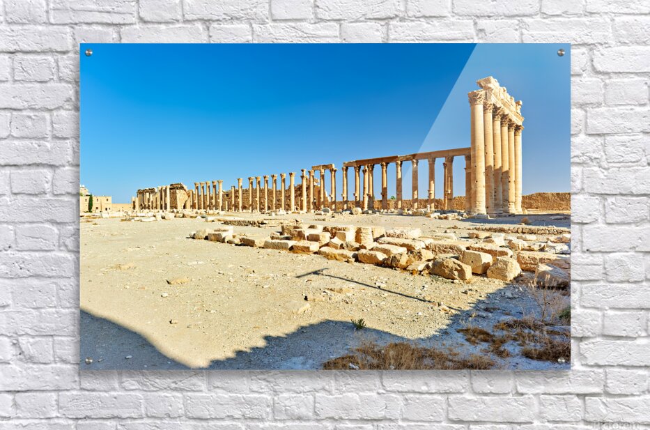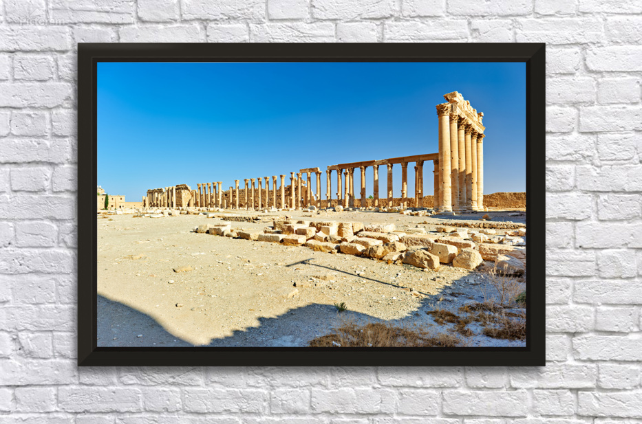 "Exploring the ancient city of Palmyra in Syria near the Temple o" in a framed print.