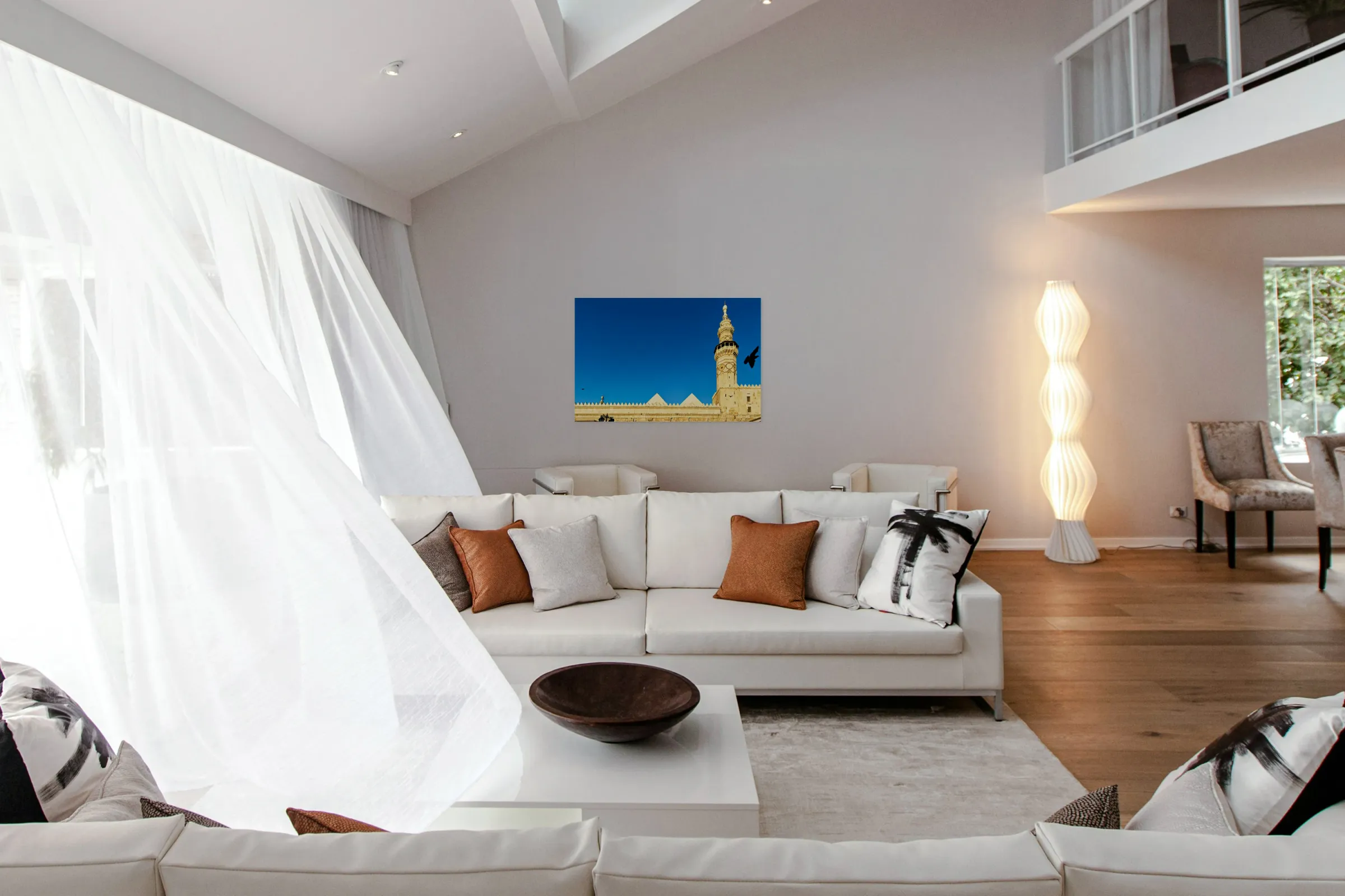 ABOUT THIS ARTWORK: MOSQUE TOWER IN DAMASCUS AGAINST CLEAR BLUE SKY